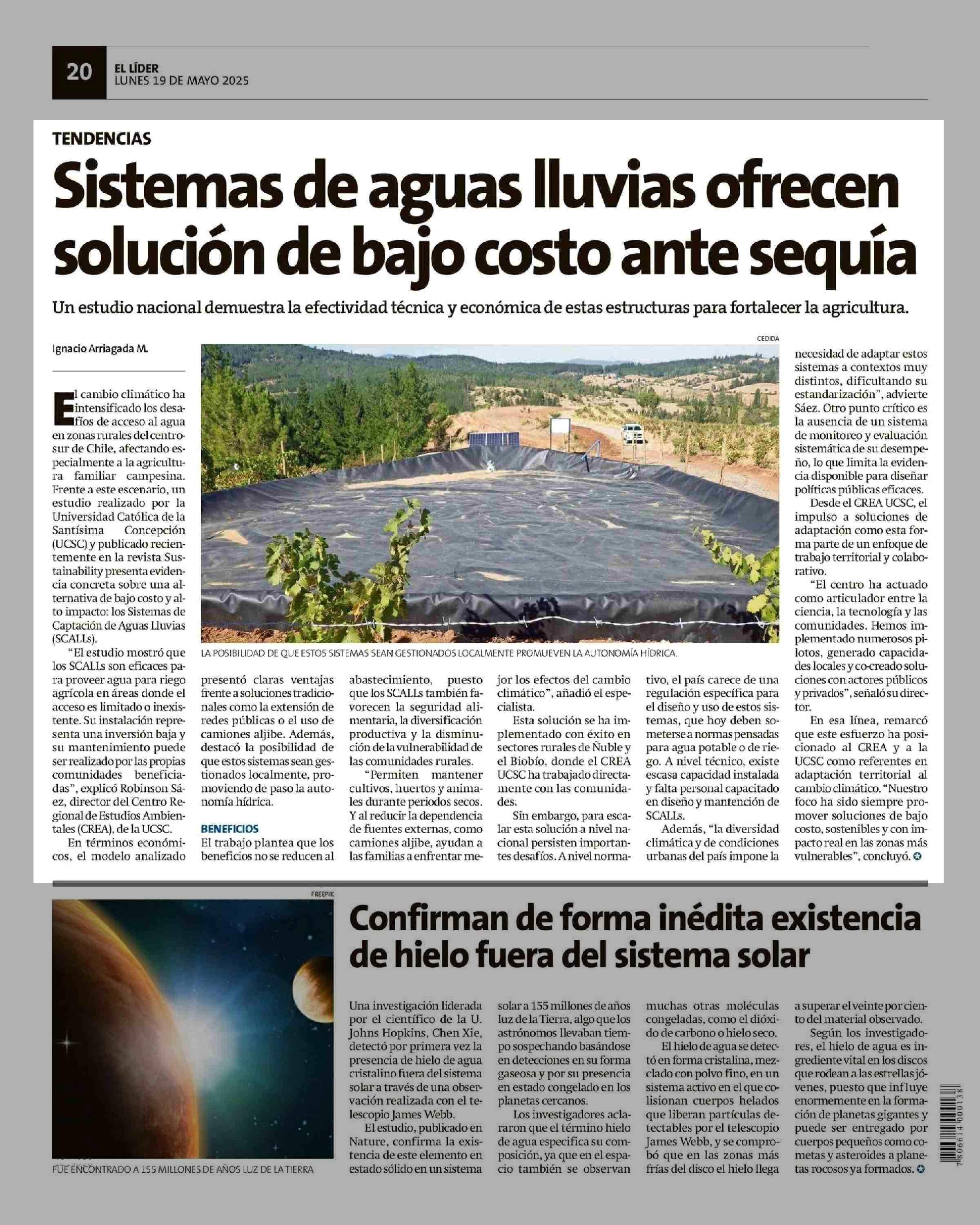 Sistemas de aguas lluvias ofrecen solución de bajo costo ante sequla 19-05-2025 El Líder |
