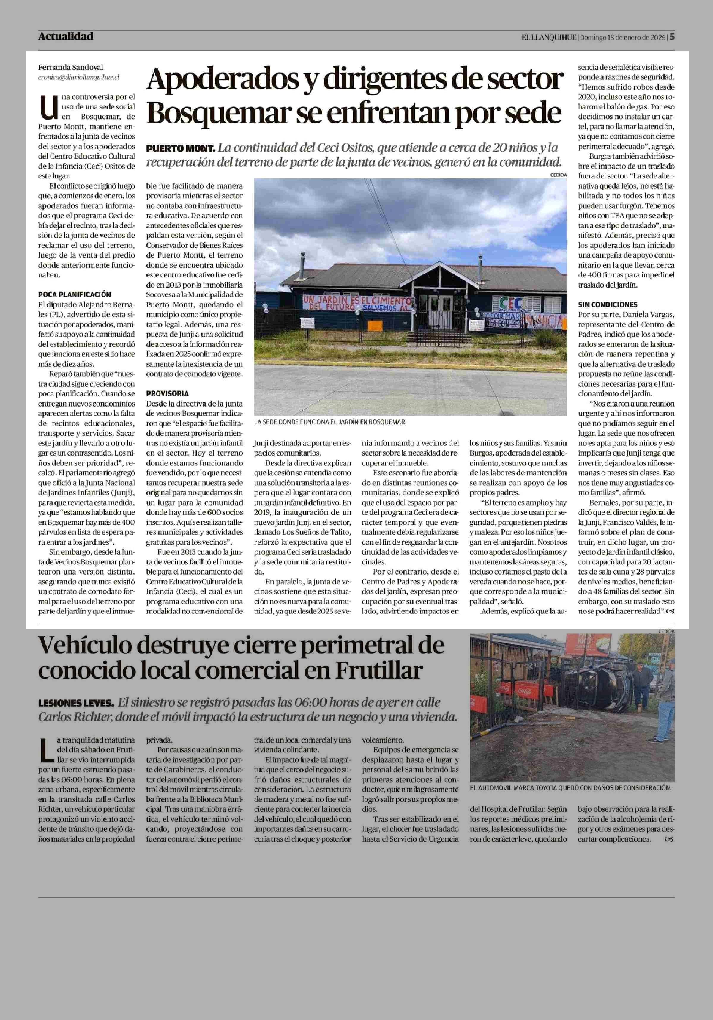 | Fecha: | 18-01-2026 | Sector: | Noticia general | Región: | Región de Los Lagos |