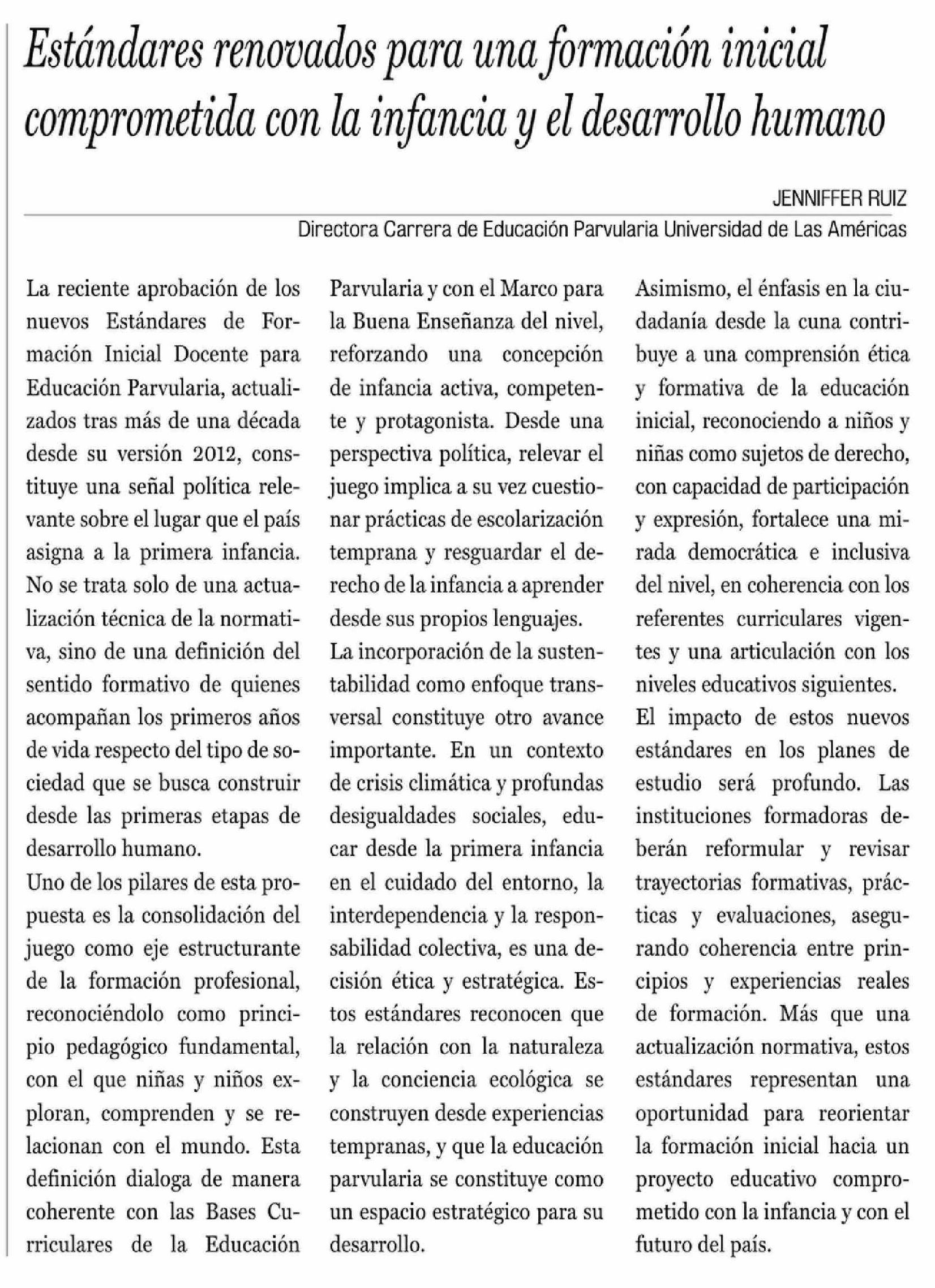 Título: Columnas de Opinión: Estándares renovados para una formación inicial comprometida con la infancia y el desarrollo humano
