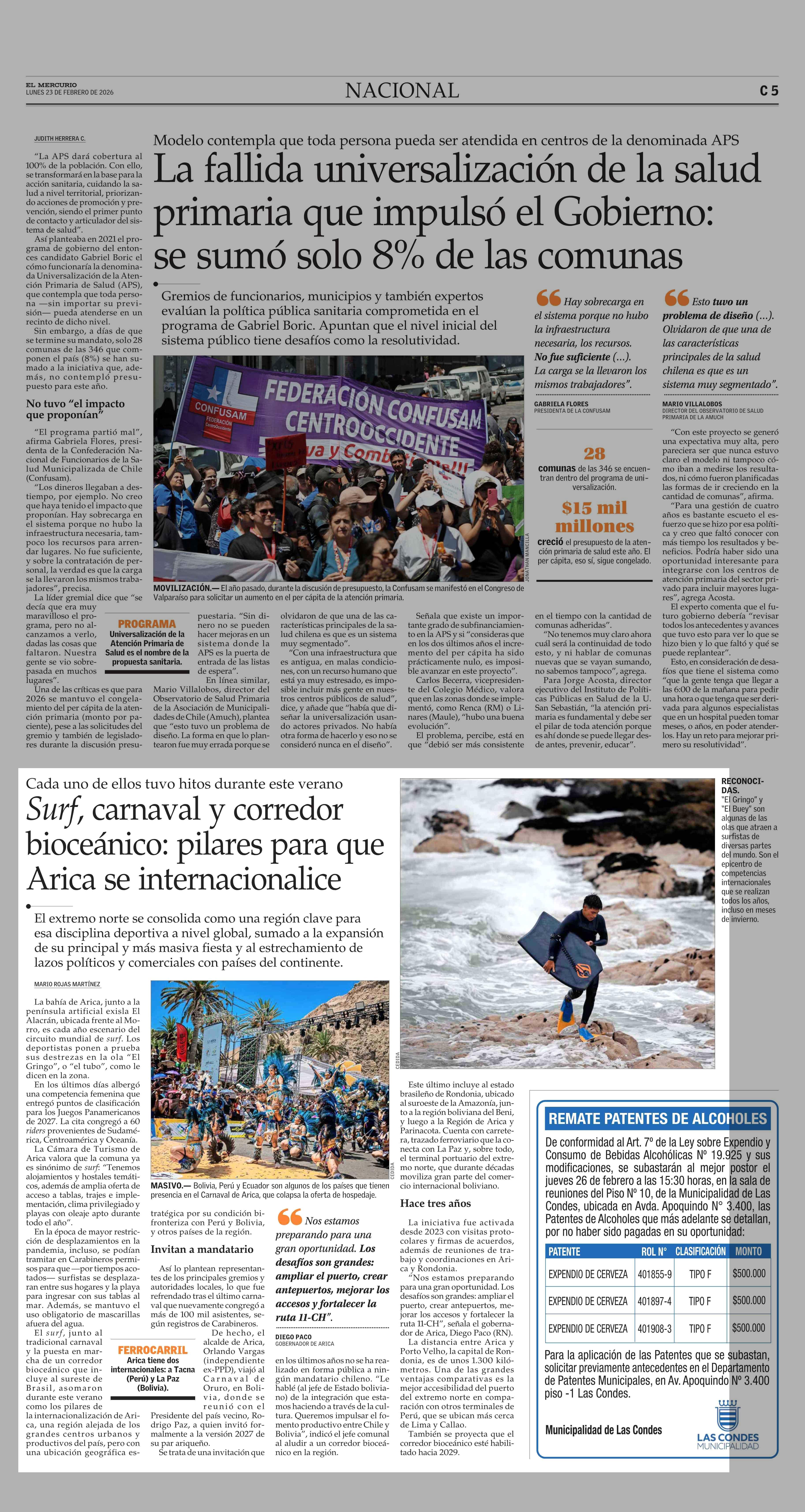 Surf, carnaval y corredor bioceánico: pilares para que Arica se internacionalice 23-02-2026 El Mercurio |
