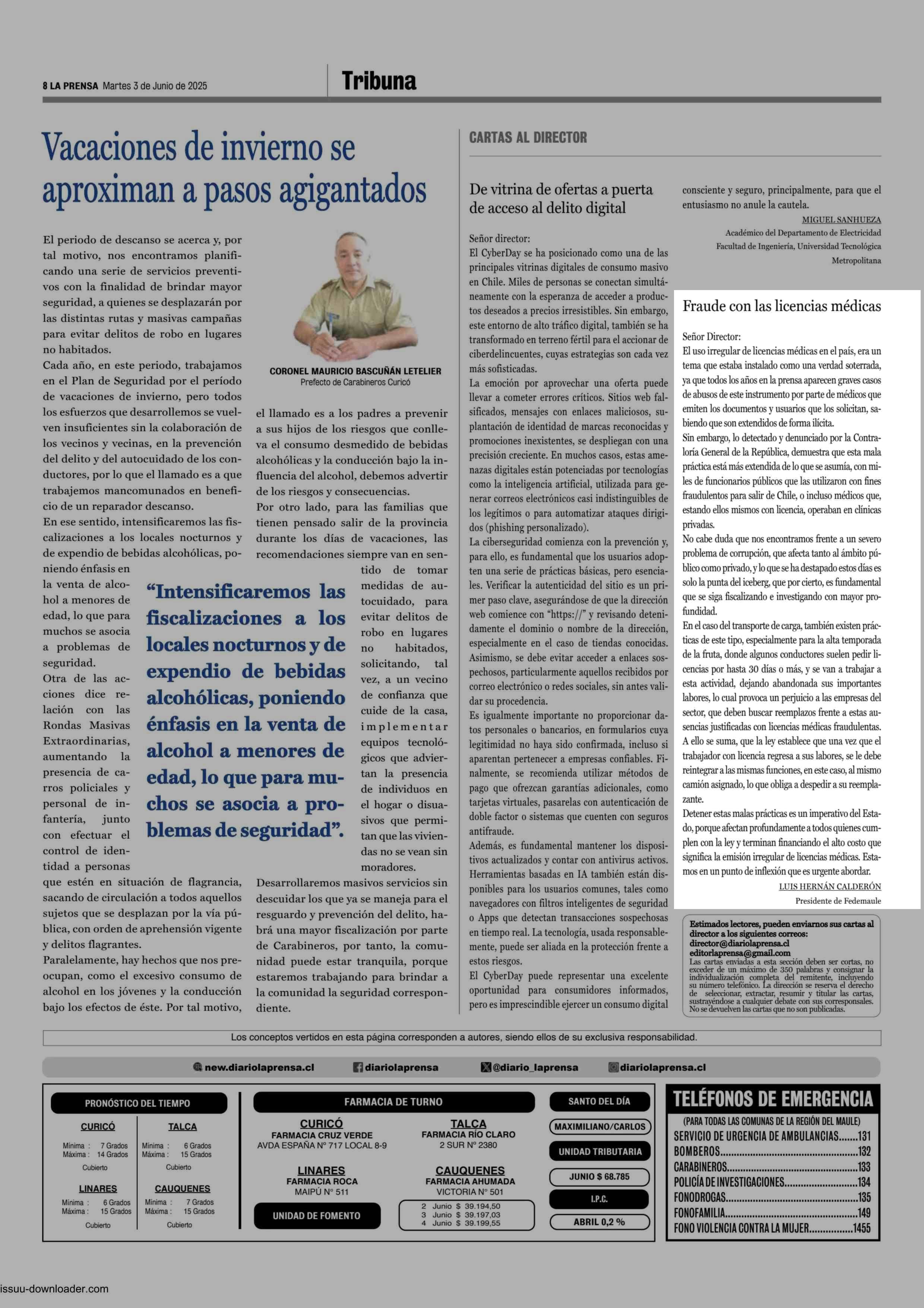 CARTAS: Fraude con las licencias médicas 03-06-2025 La Prensa de Curicó |