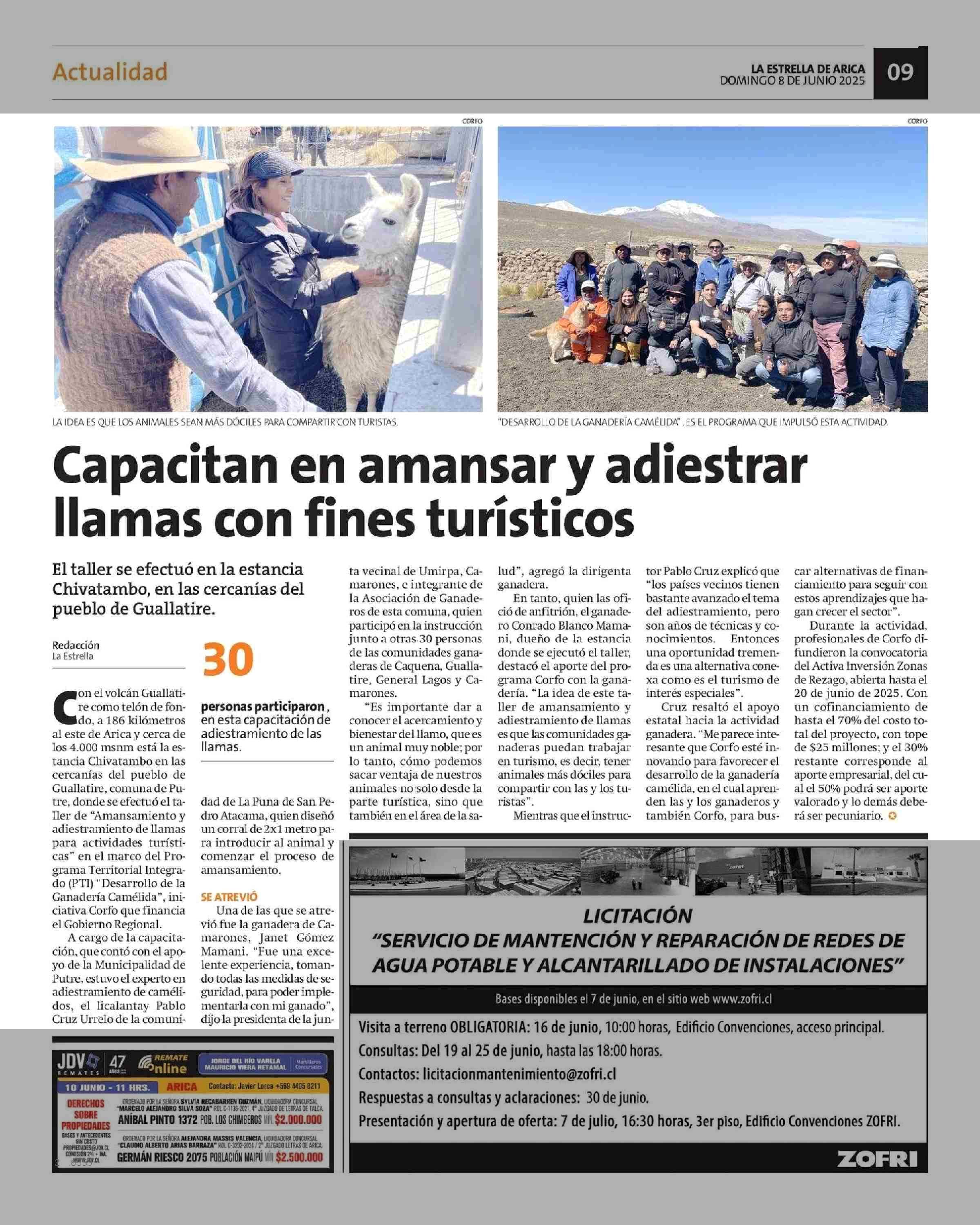 Capacitan en amansar y adiestrar llamas con fines turísticos 08-06-2025 La Estrella de Arica |