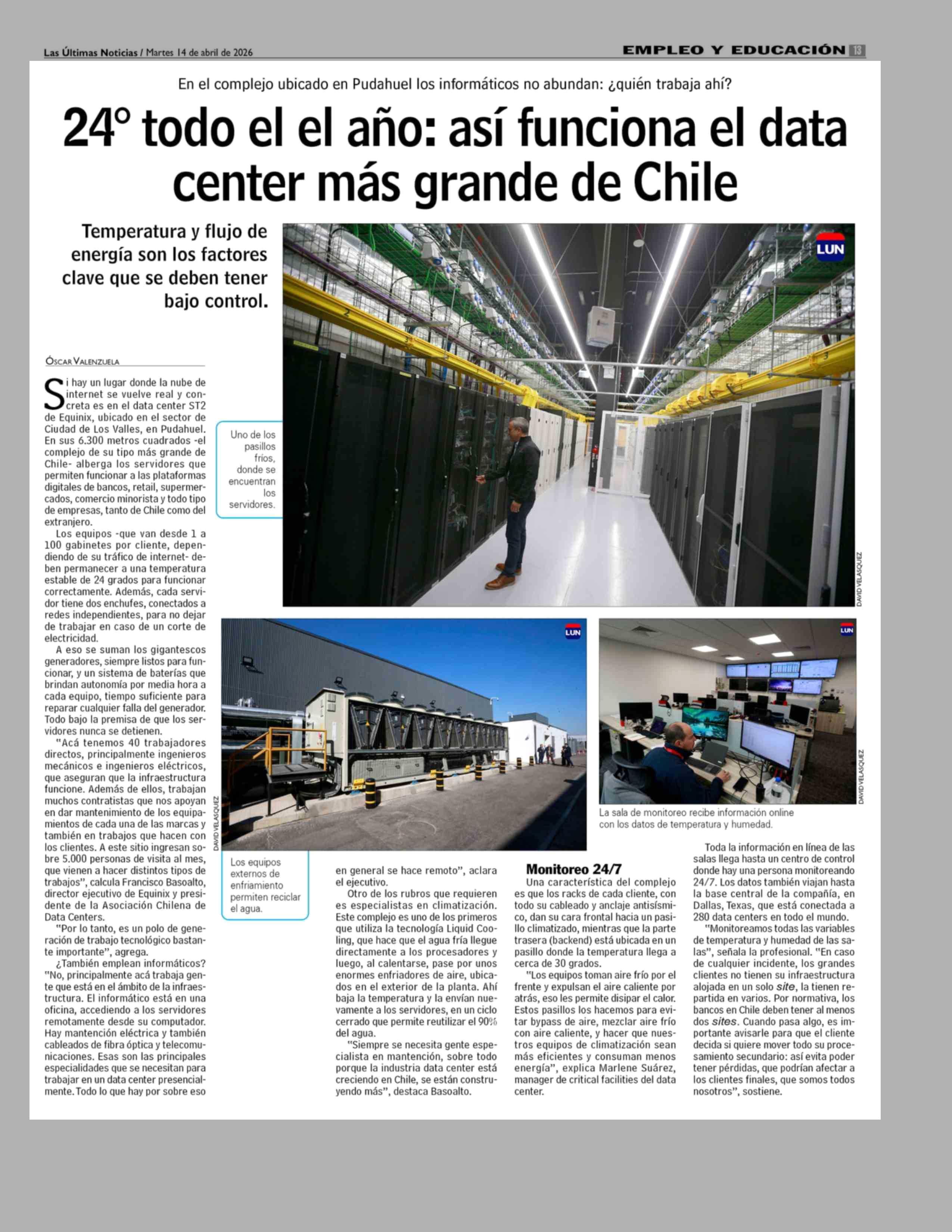 24° Todo el el año: así funciona el data center más grande de Chile 14-04-2026 Las Últimas Noticias |