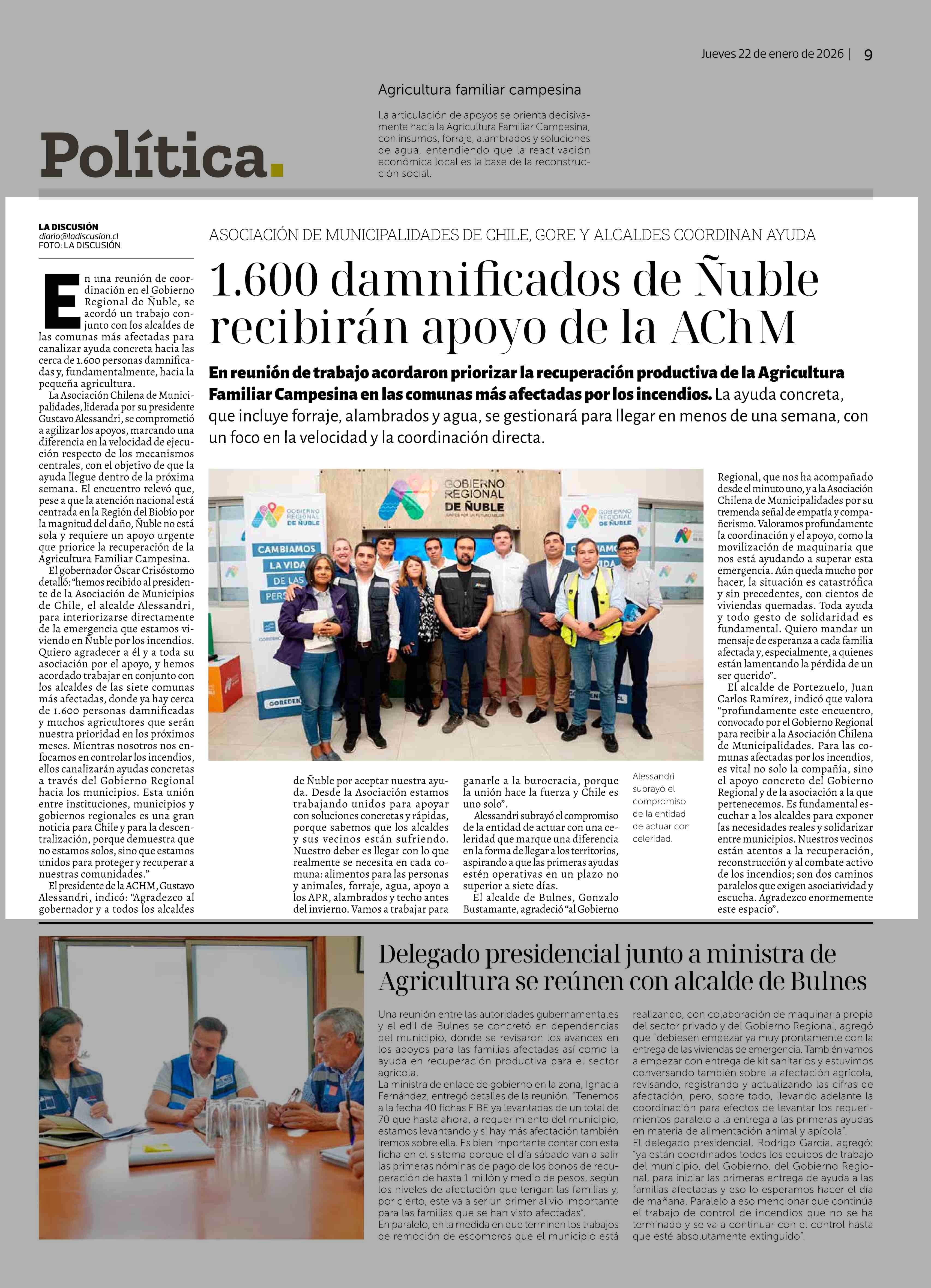 1.600 damnificados de Ñuble recibirán apoyo de la AChM 22-01-2026 La Discusión |