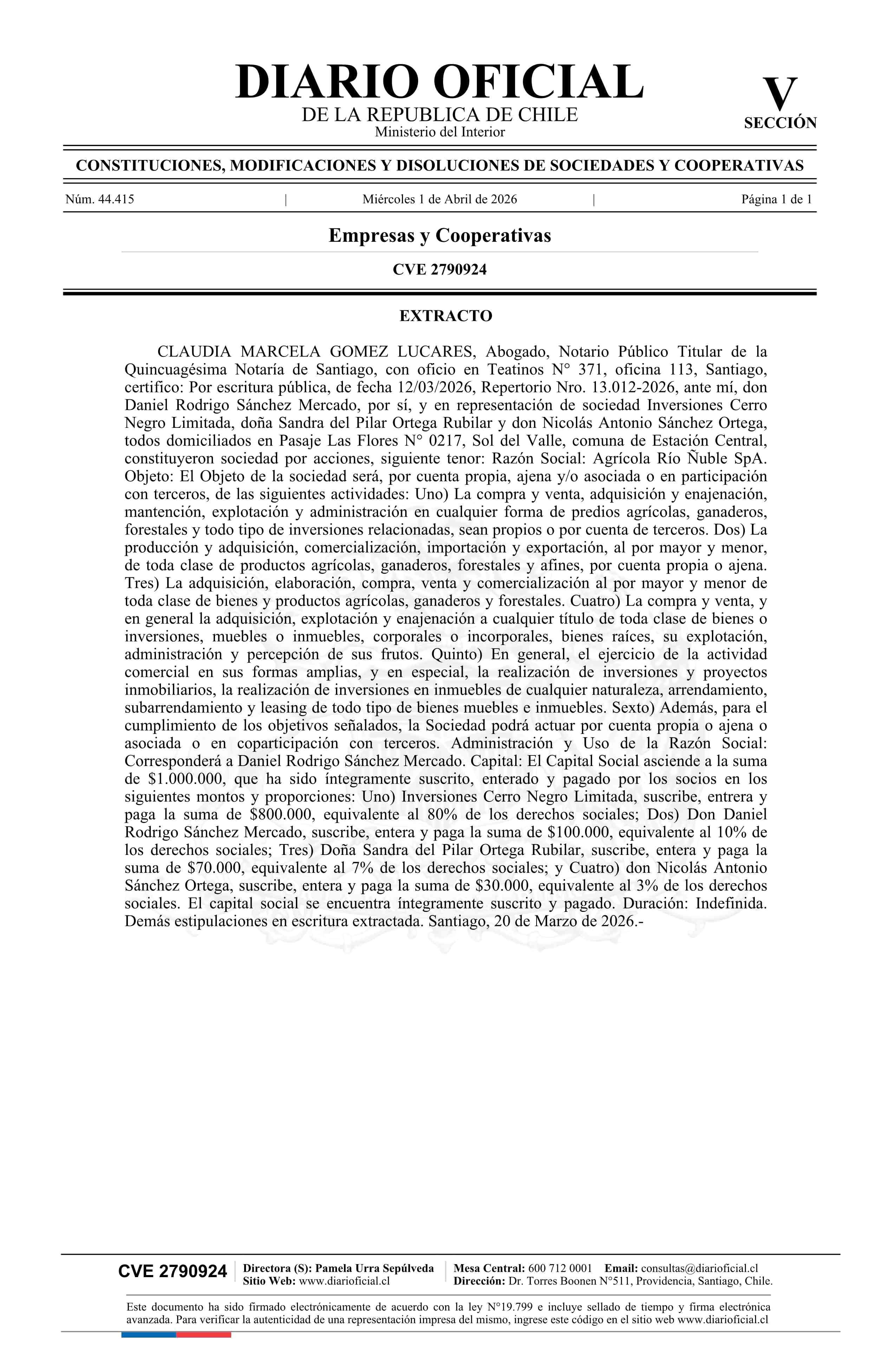 Fuente: Diario Oficial Edición Electrónica (Diario Oficial de Chile - 5 Empresas Y Cooper) Página(s): 13