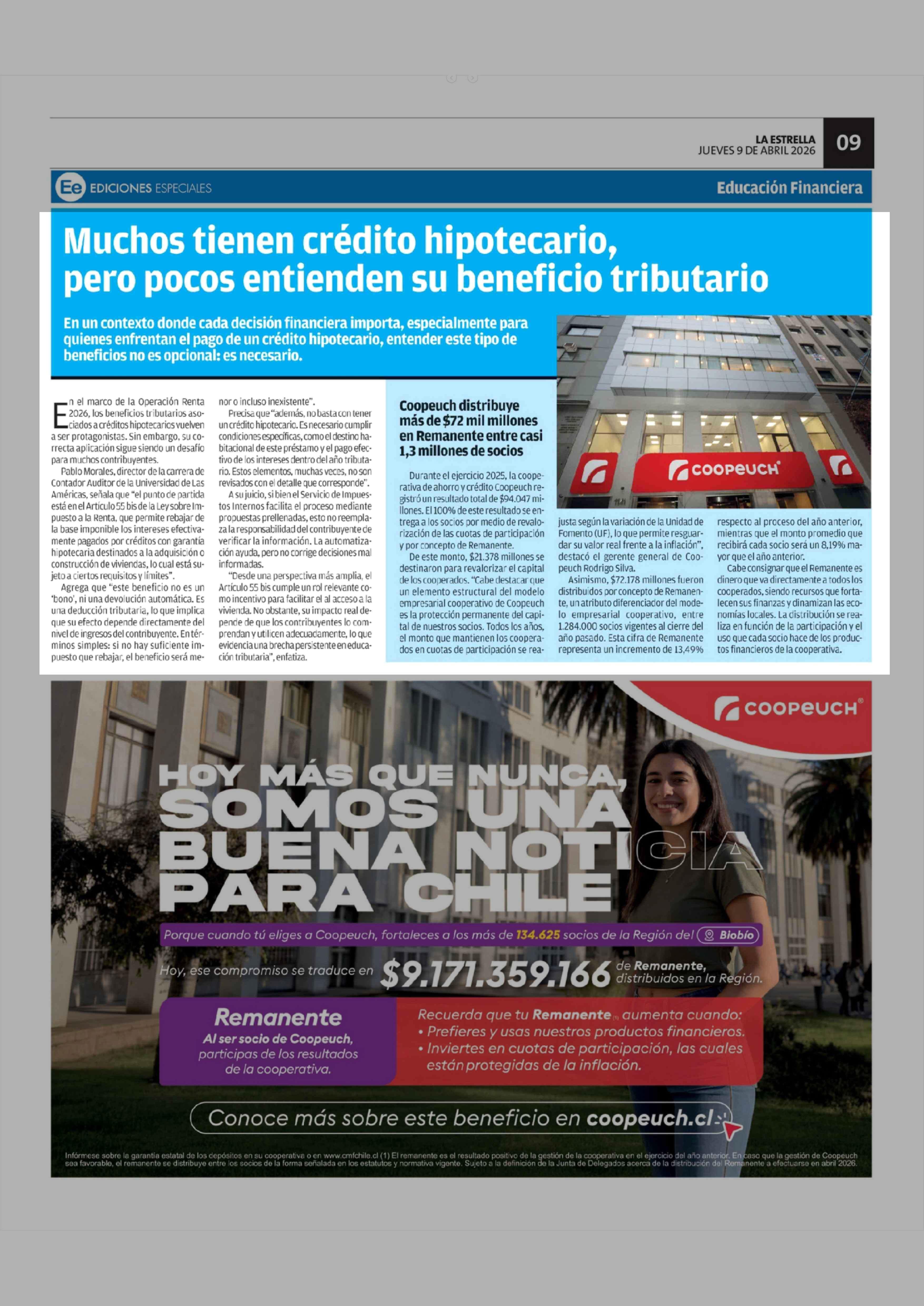 Muchos tienen crédito hipotecario, pero pocos entienden su beneficio tributario 09-04-2026 La Estrella de Concepción |