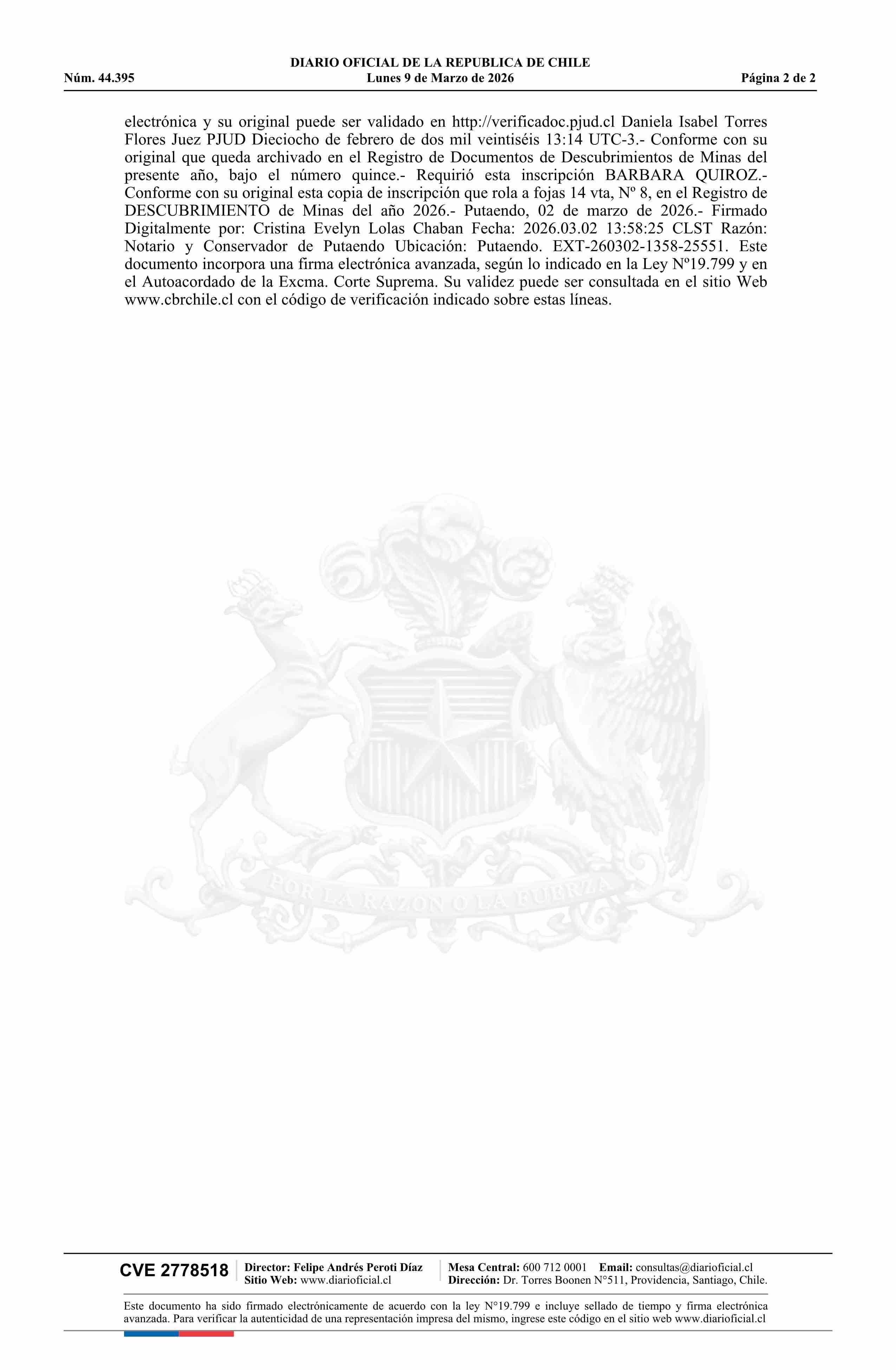 COLLIGUAY DOS 1 AL 7 / Lazcano Ahumada Jorge David y otro 09-03-2026 DIARIO OFICIAL CHILE - BOLETÍN OFICIAL DE MINERÍA |