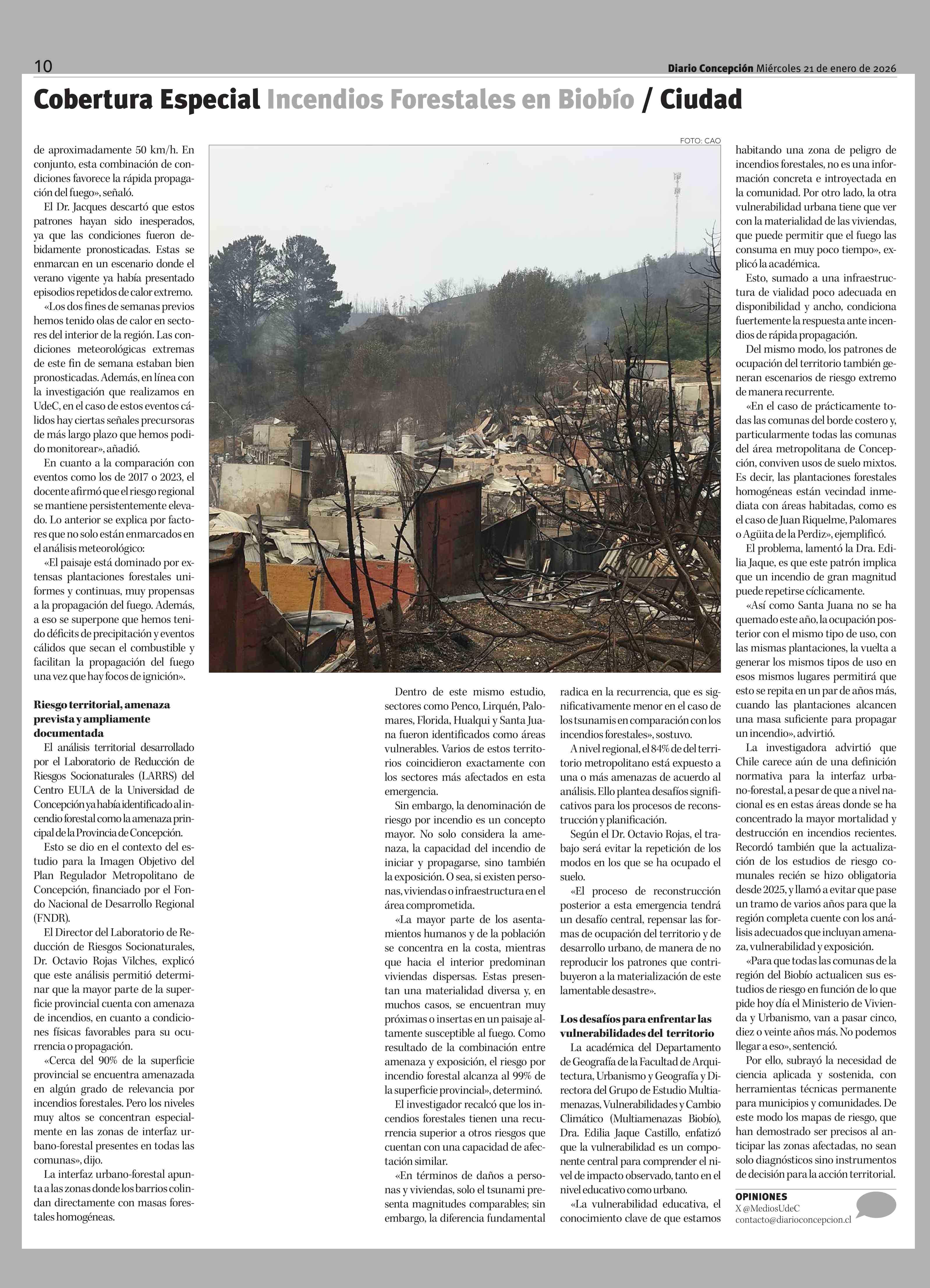 Título: Incendios forestales de gran escala confirman vulnerabilidades territoriales del Biobío, advierten especialistas