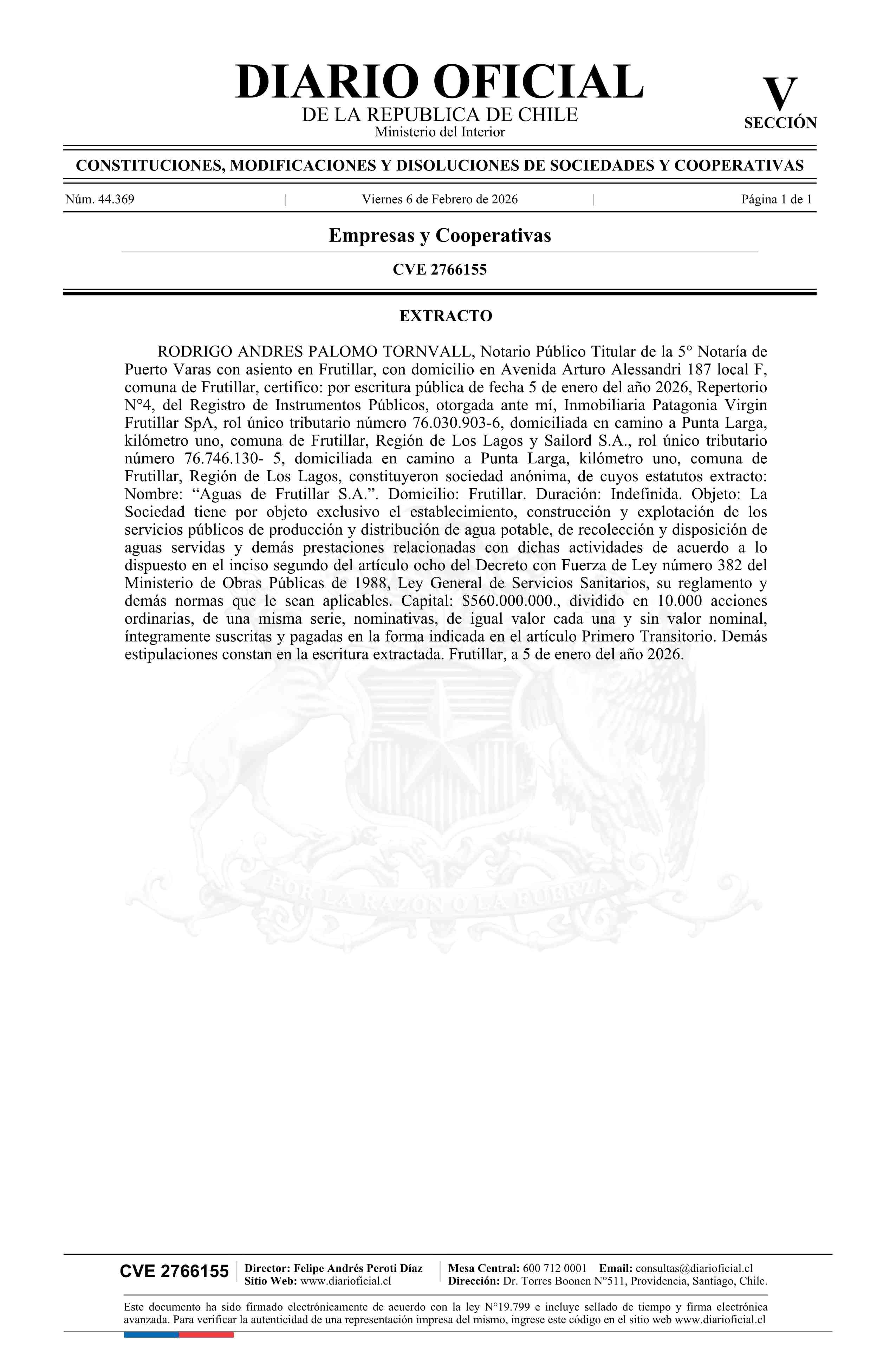Fuente: Diario Oficial Edición Electrónica (Diario Oficial de Chile - 5 Empresas Y Cooper) Página(s): 1