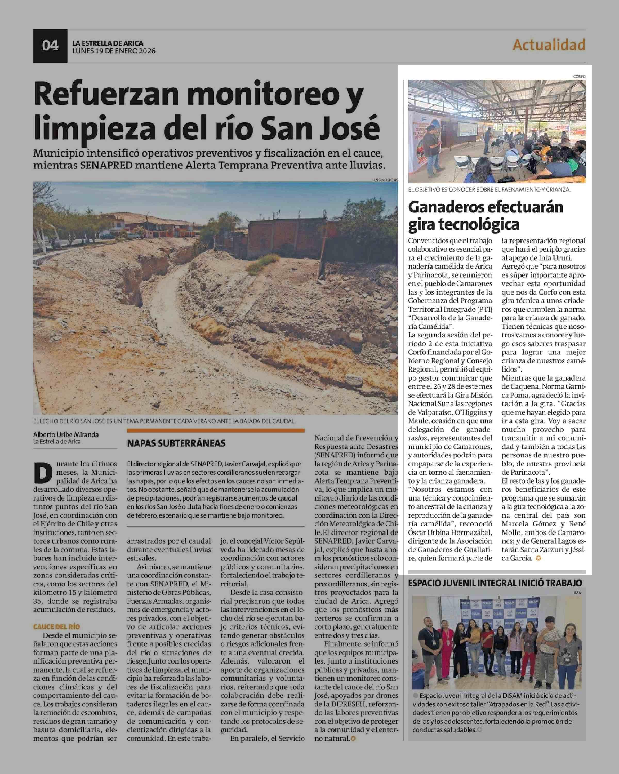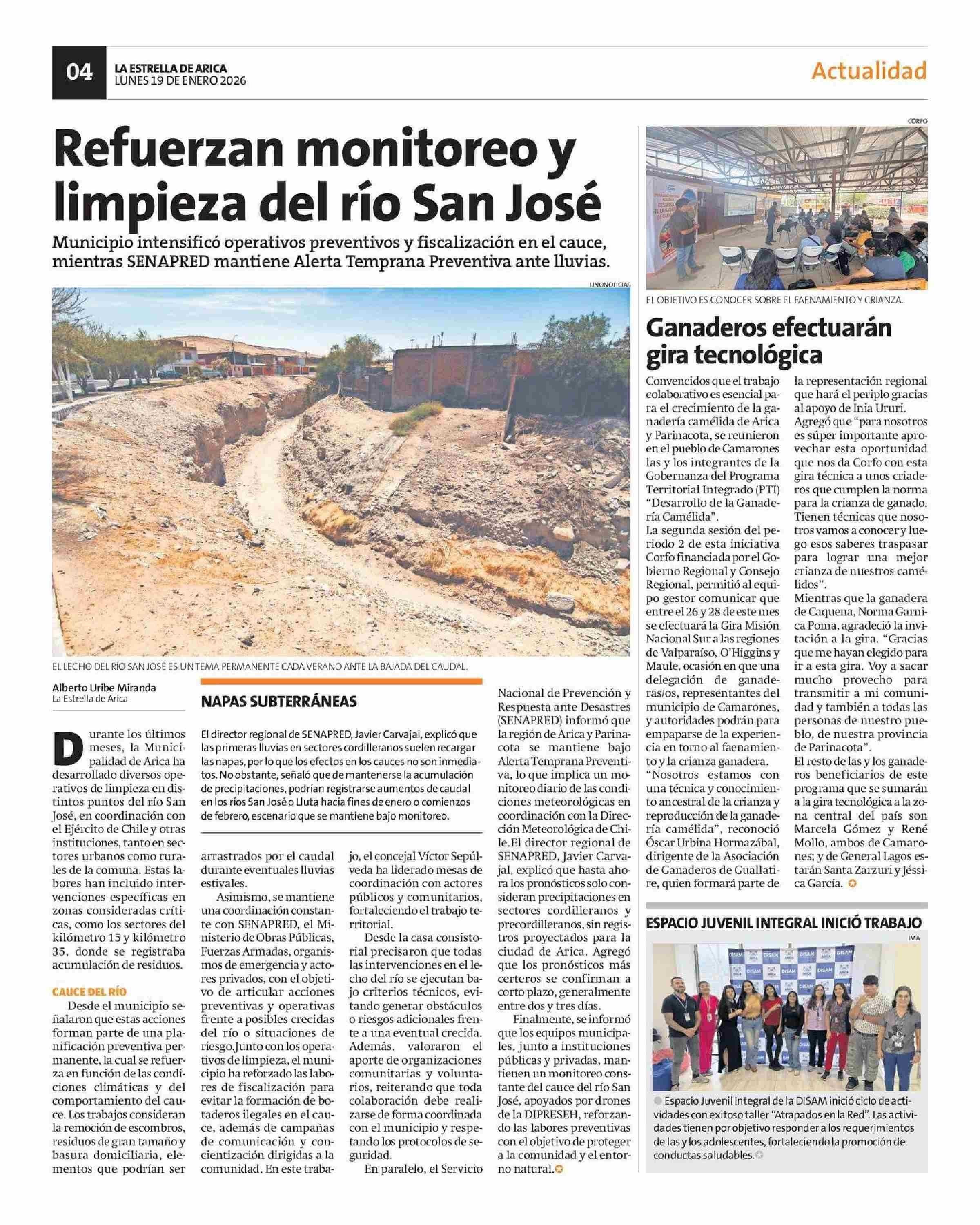 | Fecha: | 19-01-2026 | Sector: | Noticia general | Región: | Región de Arica y Parinacota |