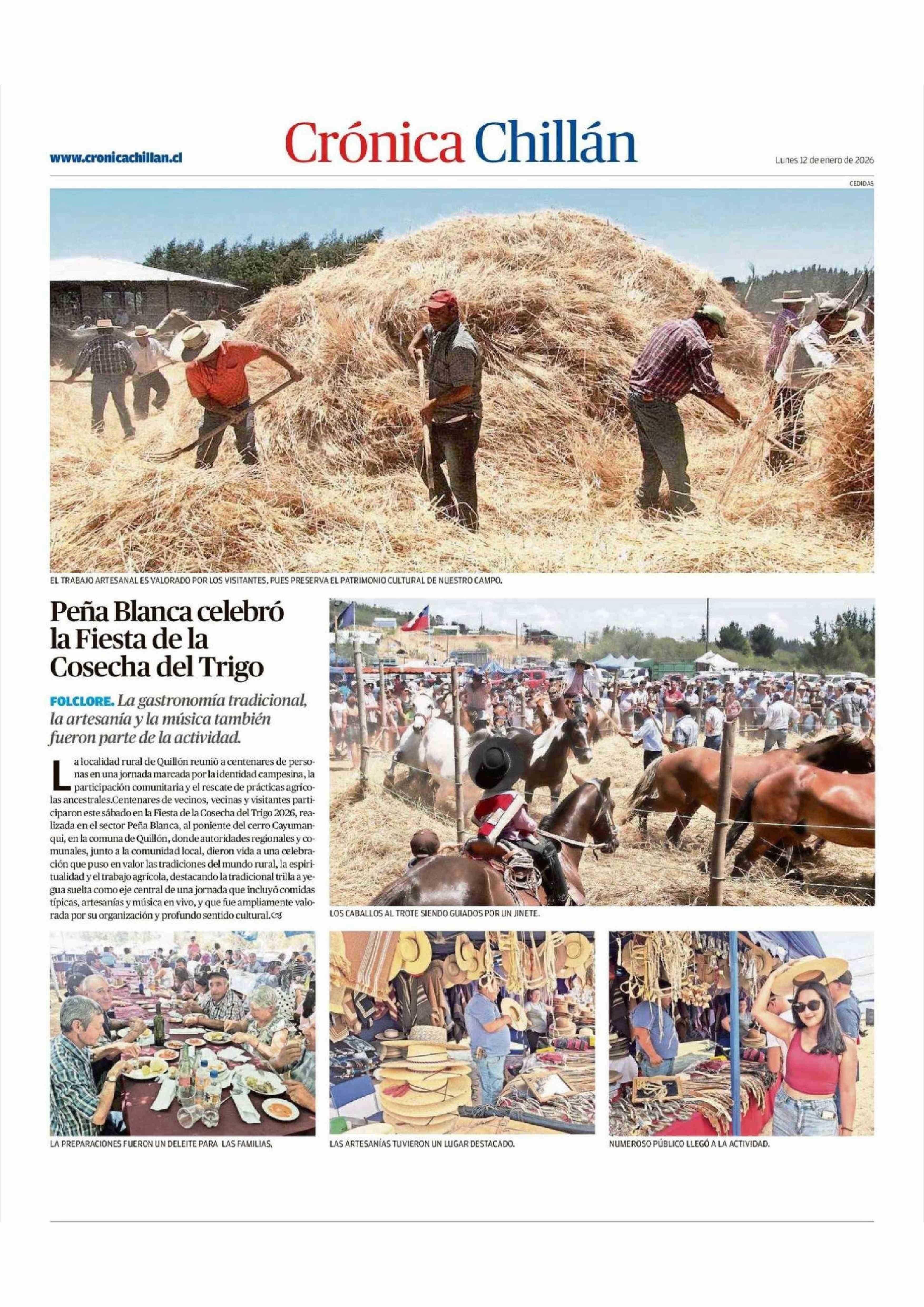 Peña Blanca celebró la Fiesta de la Cosecha del Trigo 12-01-2026 Crónica de Chillán |