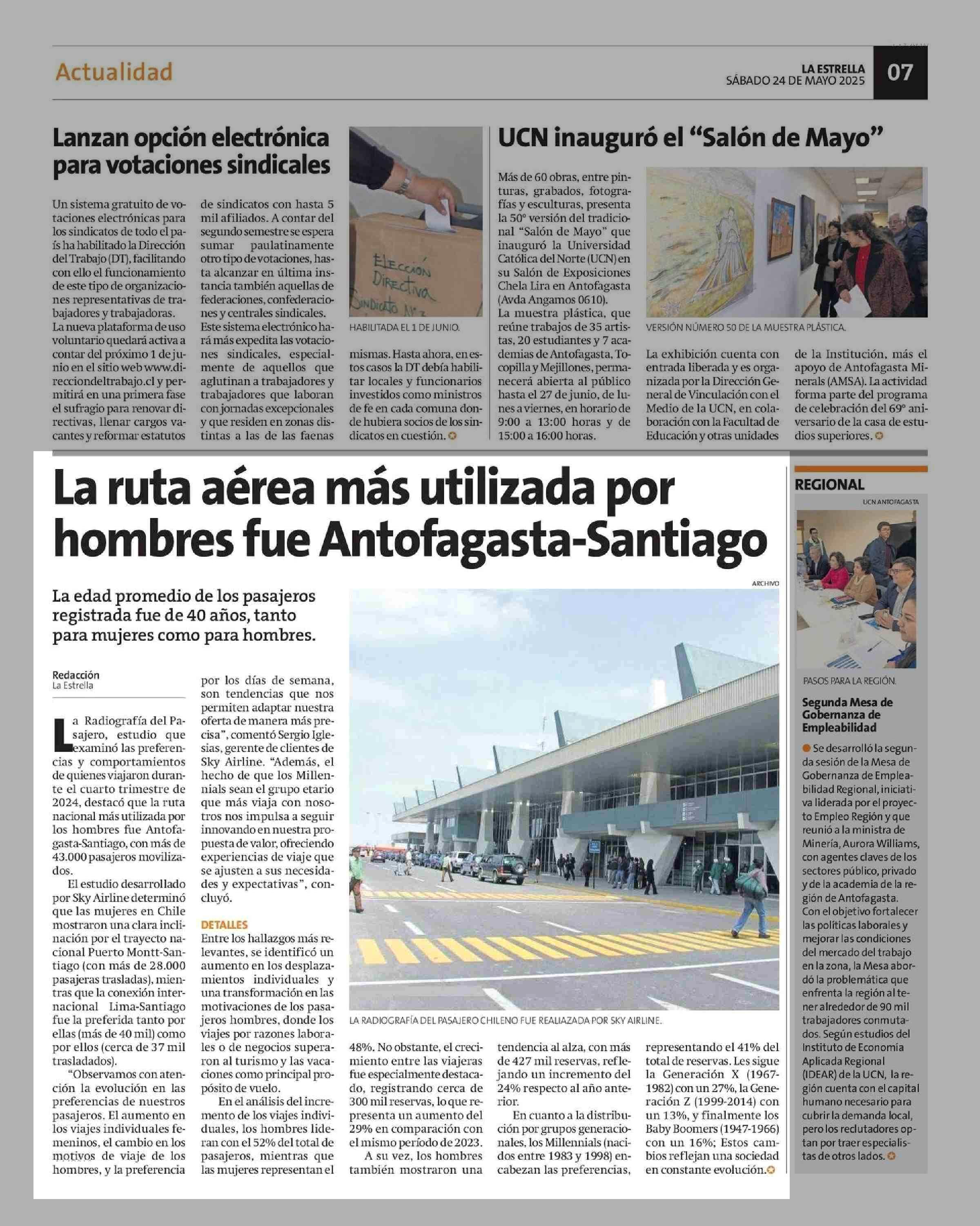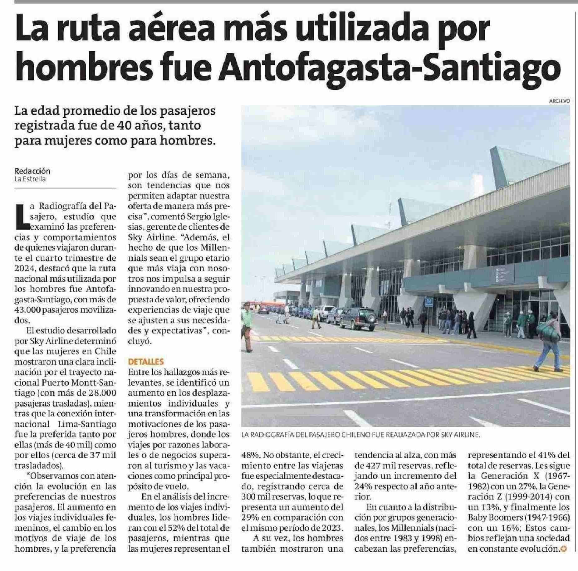 La ruta aérea más utilizada por hombres fue Antofagasta-Santiago 24-05-2025 La Estrella de Antofagasta |