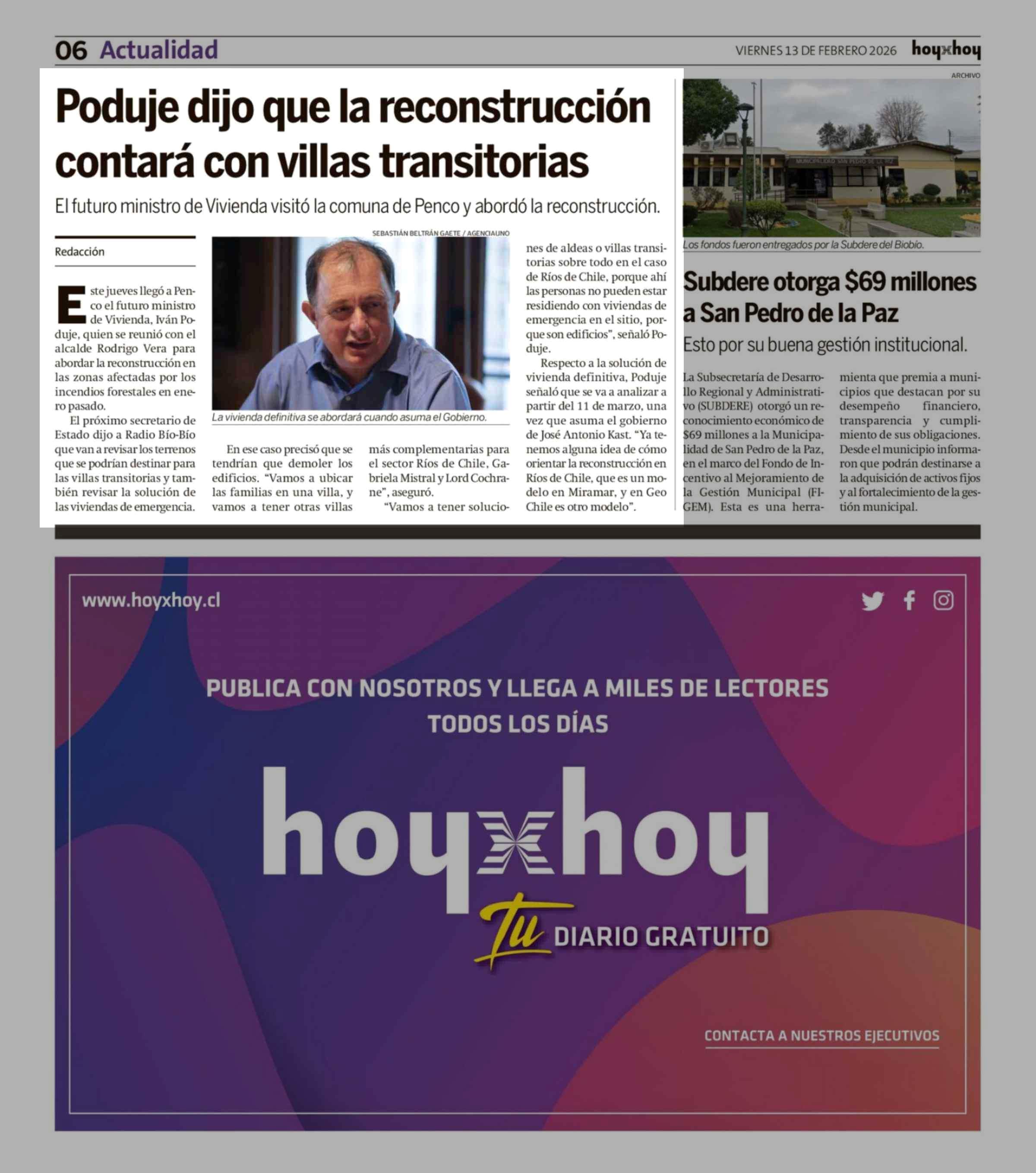 Poduje dijo que la reconstrucción contará con villas transitorias 13-02-2026 Hoy x Hoy Concepción |
