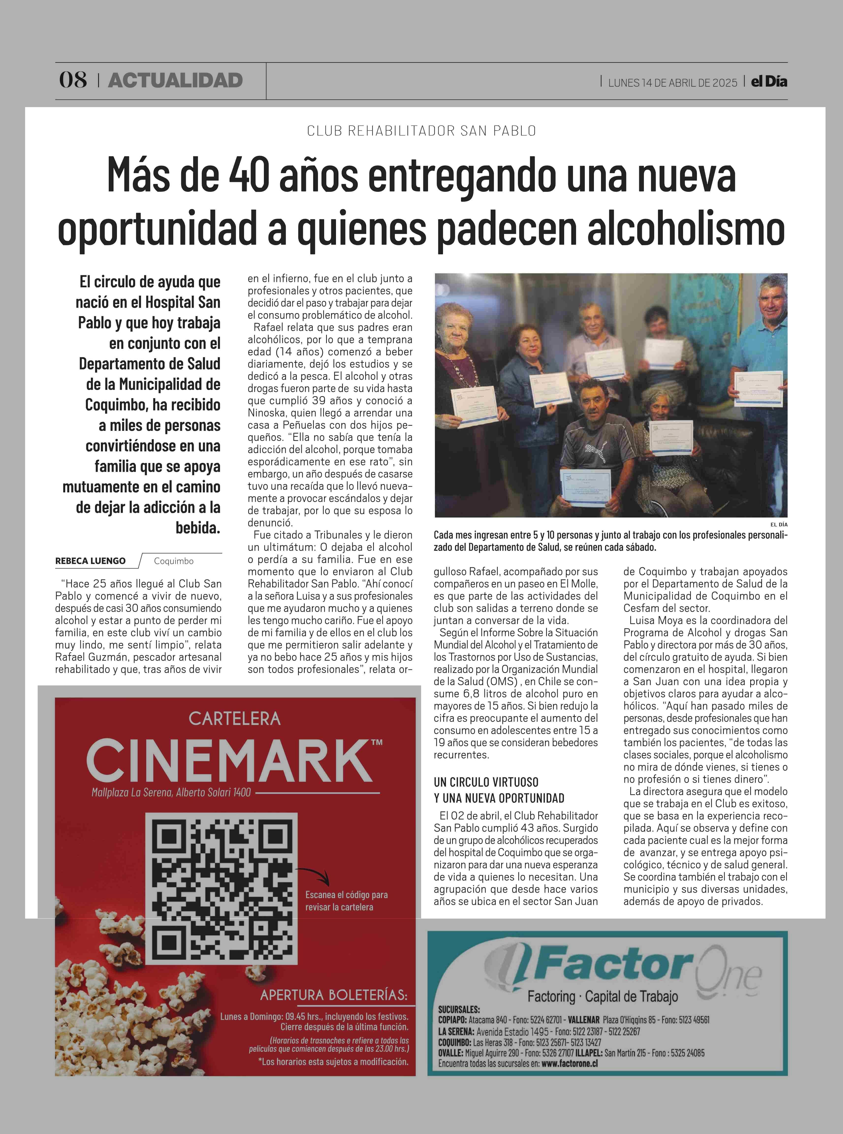 Más de 40 años entregando una nueva oportunidad a quienes padecen alcoholismo 14-04-2025 El Día |