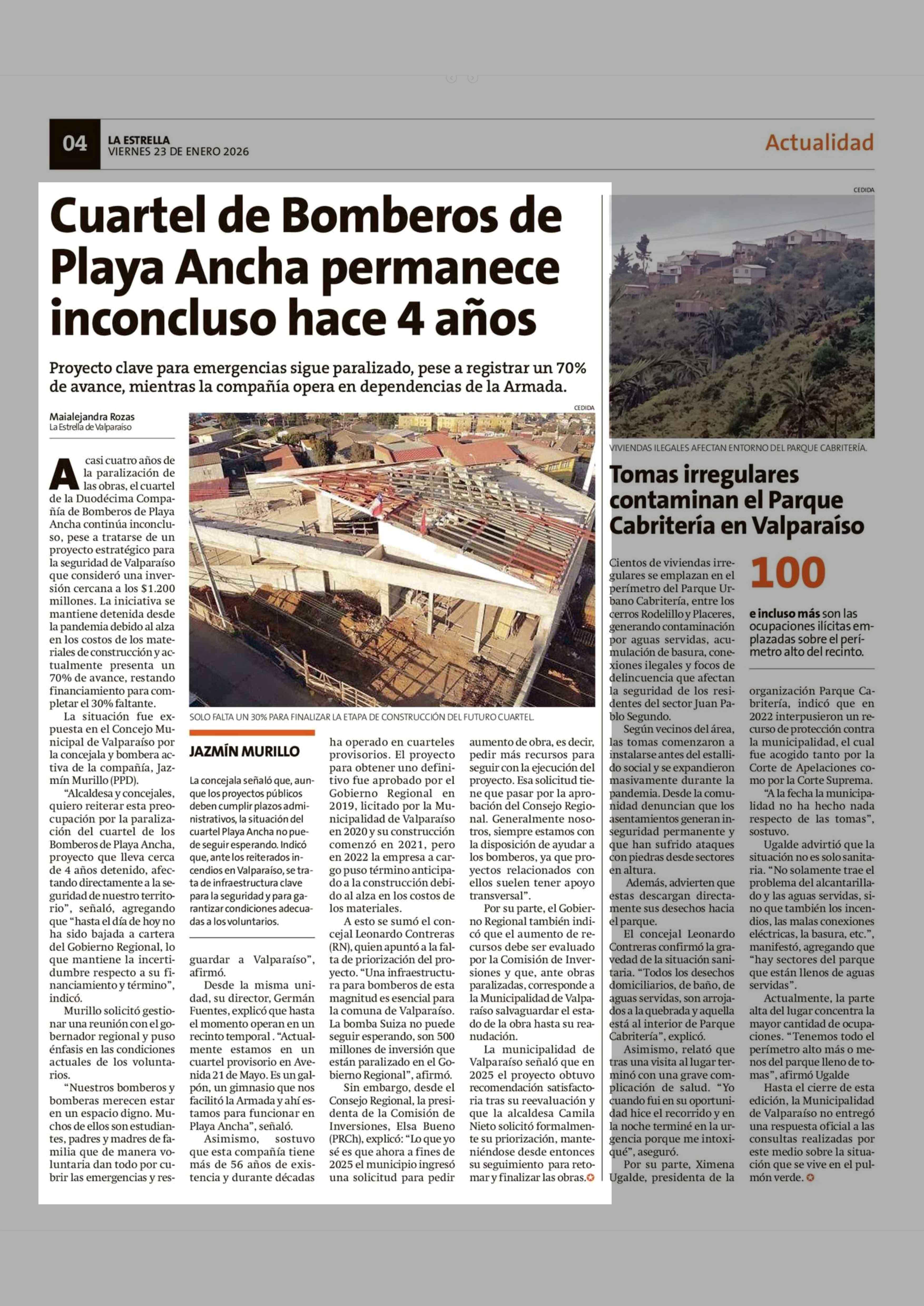 Cuartel de Bomberos de Playa Ancha permanece inconcluso hace 4 años 23-01-2026 La Estrella de Valparaíso |