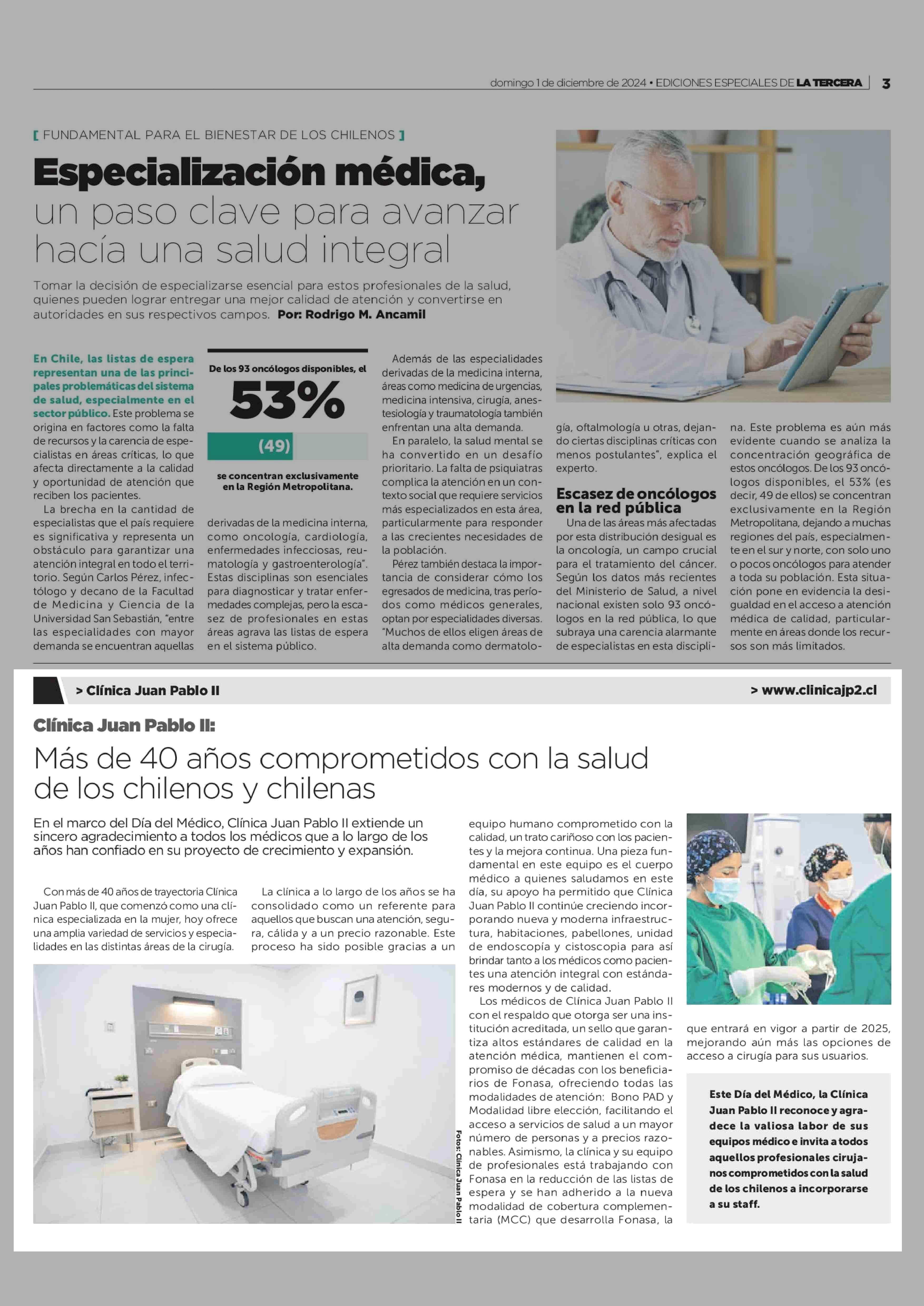 Más de 40 años comprometidos con la salud de los chilenos y chilenas 01-12-2024 La Tercera |