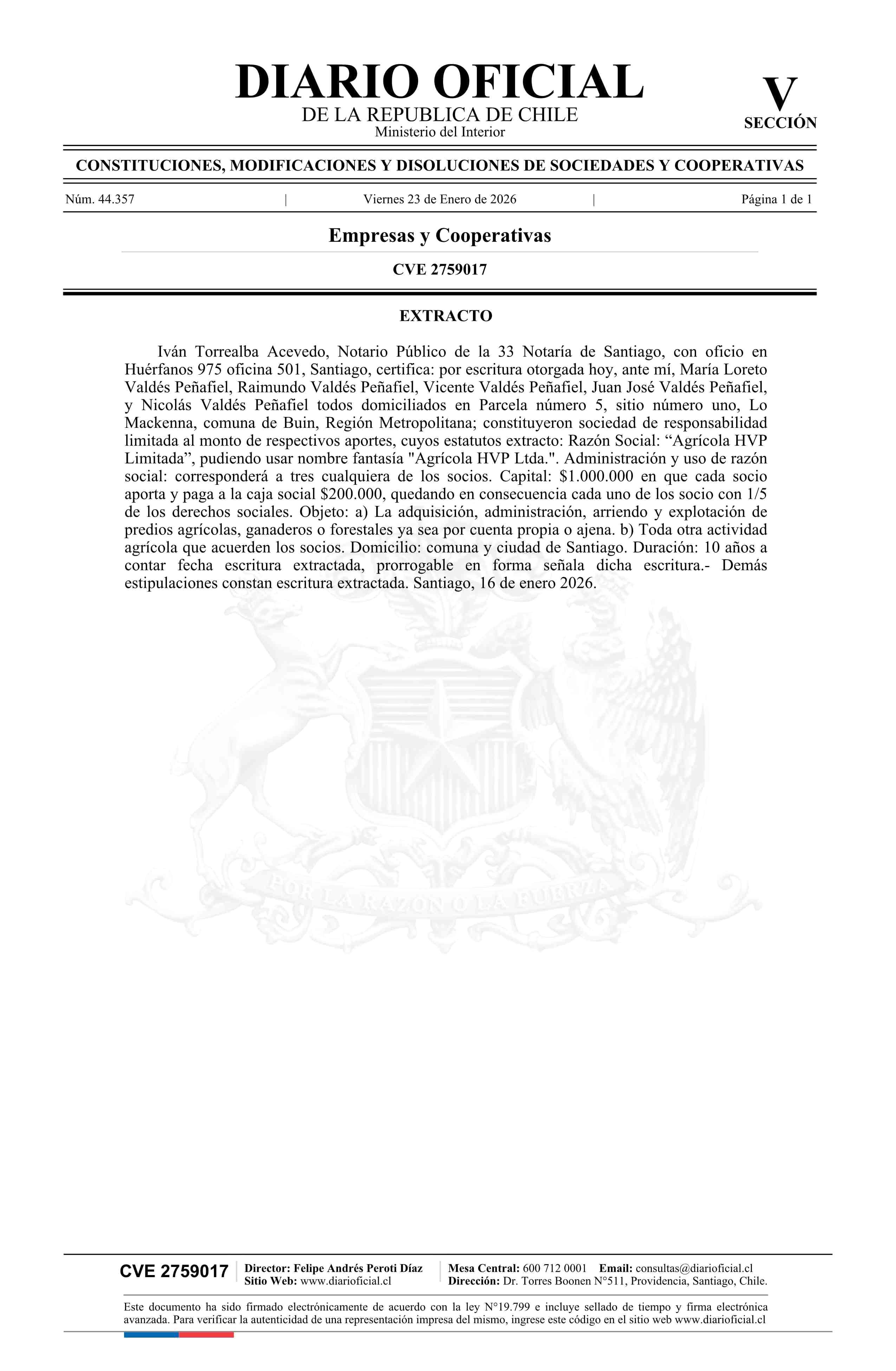 Título: Agrícola HVP Limitada