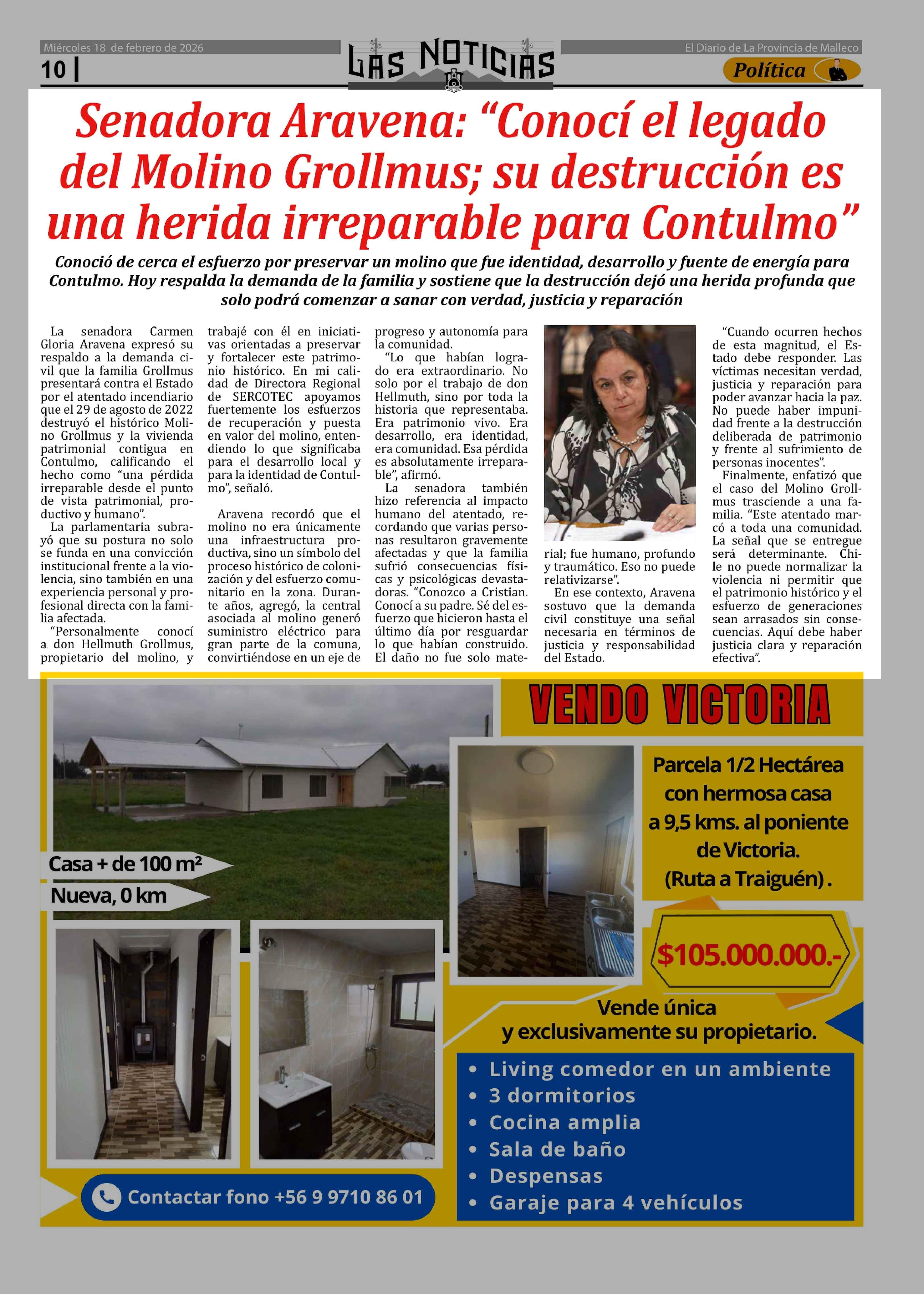 Título: Senadora Aravena: "Conocí el legado del Molino Grollmus; su destrucción es una herida irreparable para Contulmo"