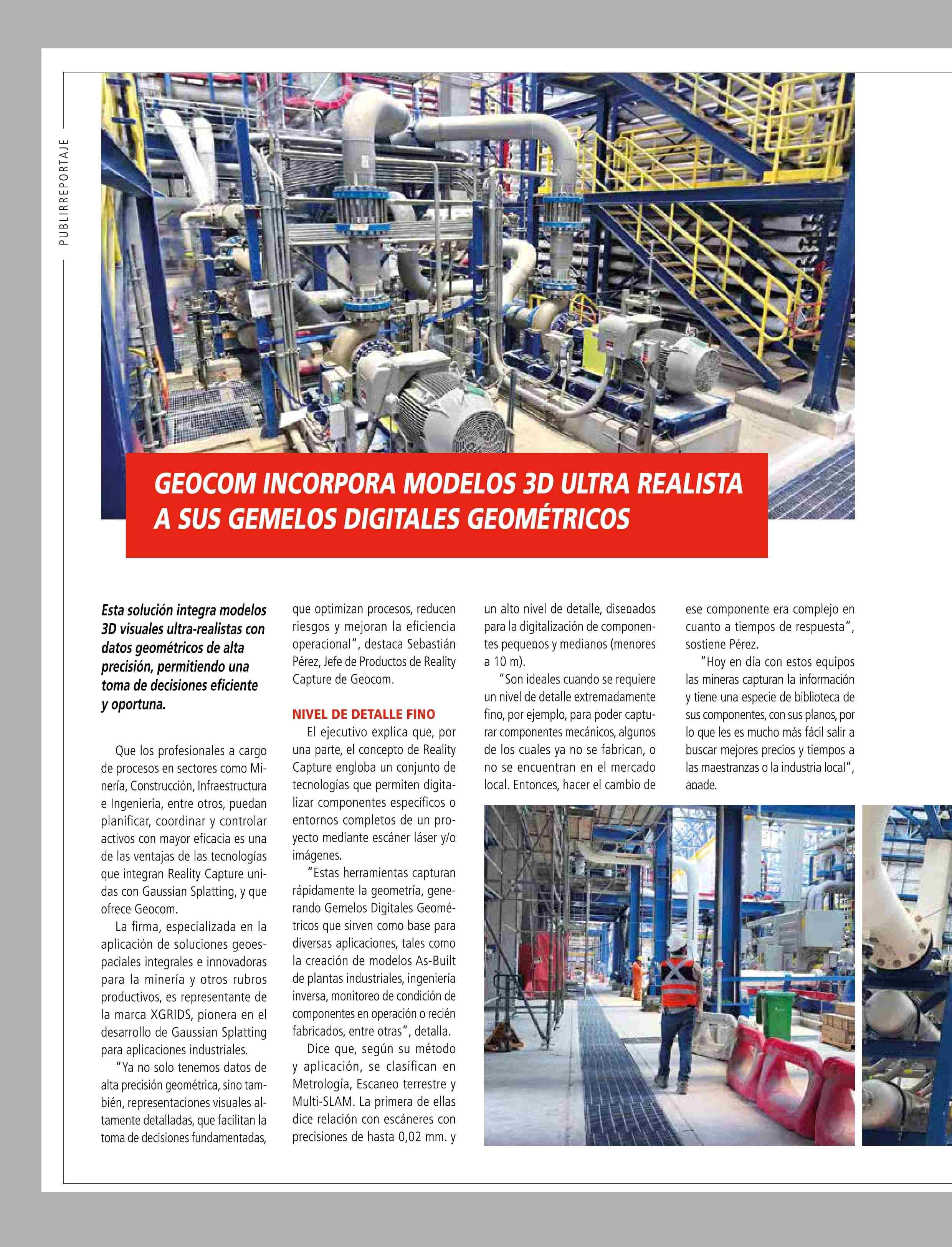 GEOCOM INCORPORA MODELOS 3D ULTRA REALISTA A SUS GEMELOS DIGITALES GEOMÉTRICOS 19-03-2026 Revista Minería Chilena |