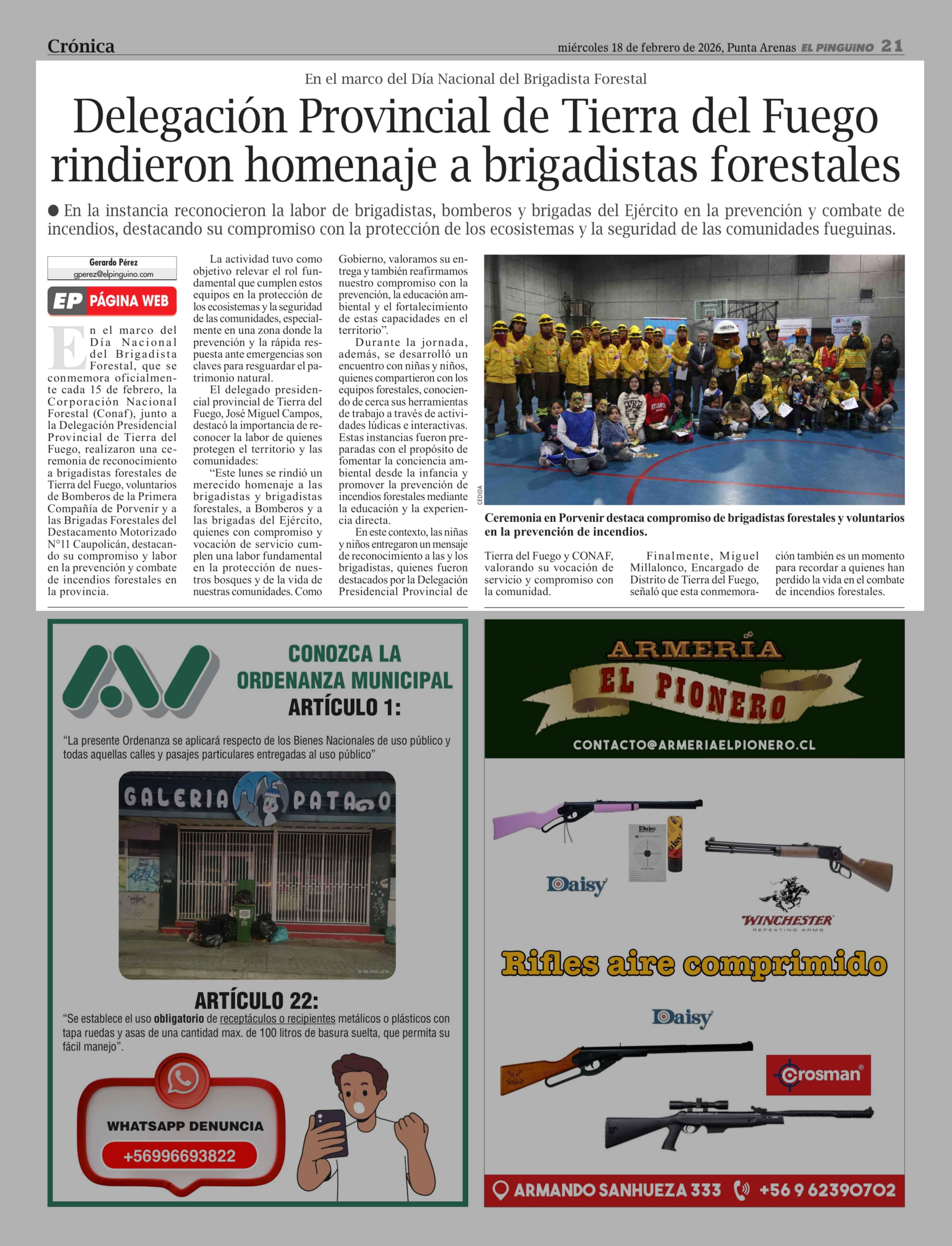 | Fecha: | 18-02-2026 | Sector: | Noticia general | Región: | Región de Magallanes y de la Antártica Chilena |