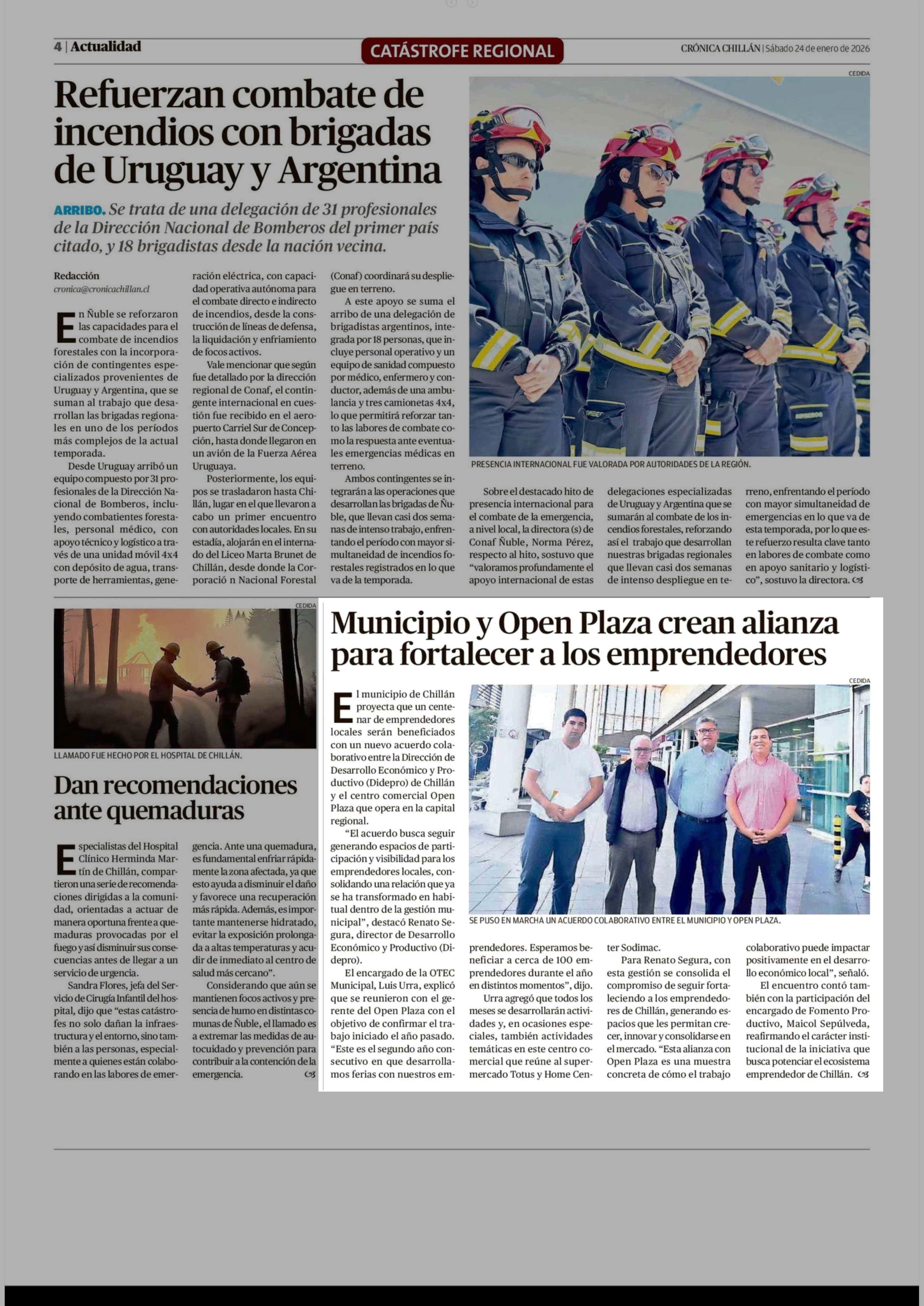 Municipio y Open Plaza crean alianza para fortalecer a los emprendedores 24-01-2026 Crónica de Chillán |