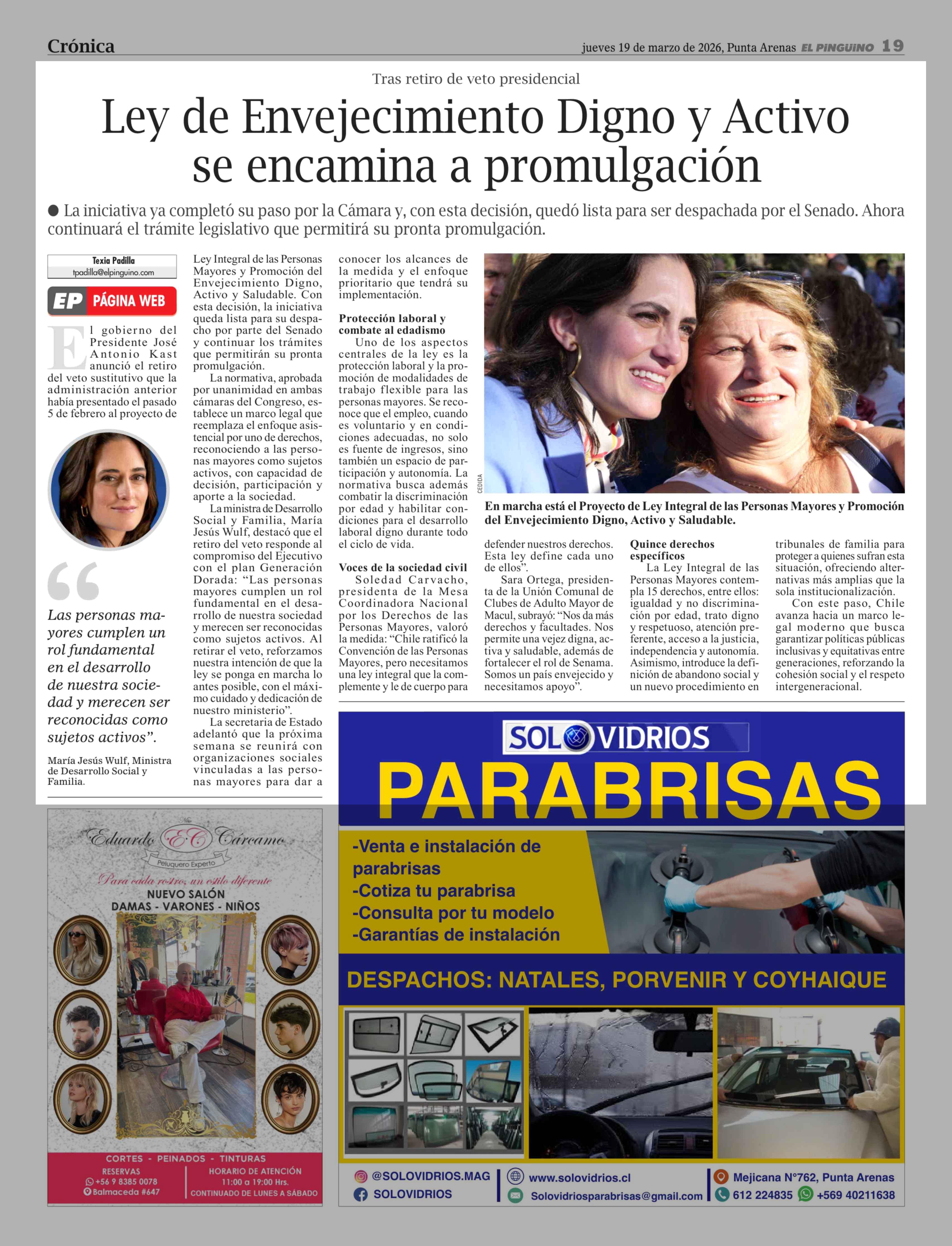 Ley de Envejecimiento Digno y Activo se encamina a promulgación 19-03-2026 El Pingüino |