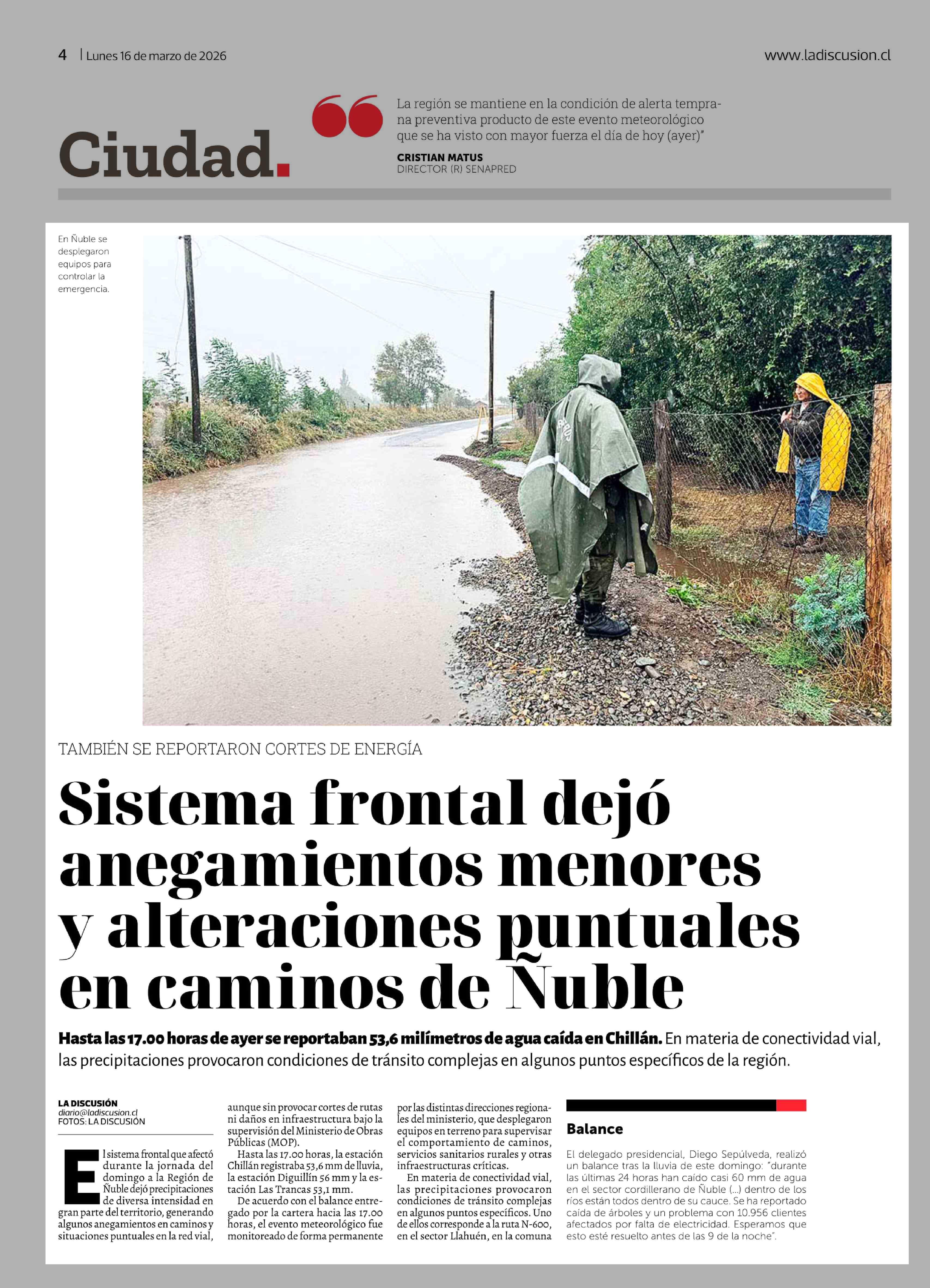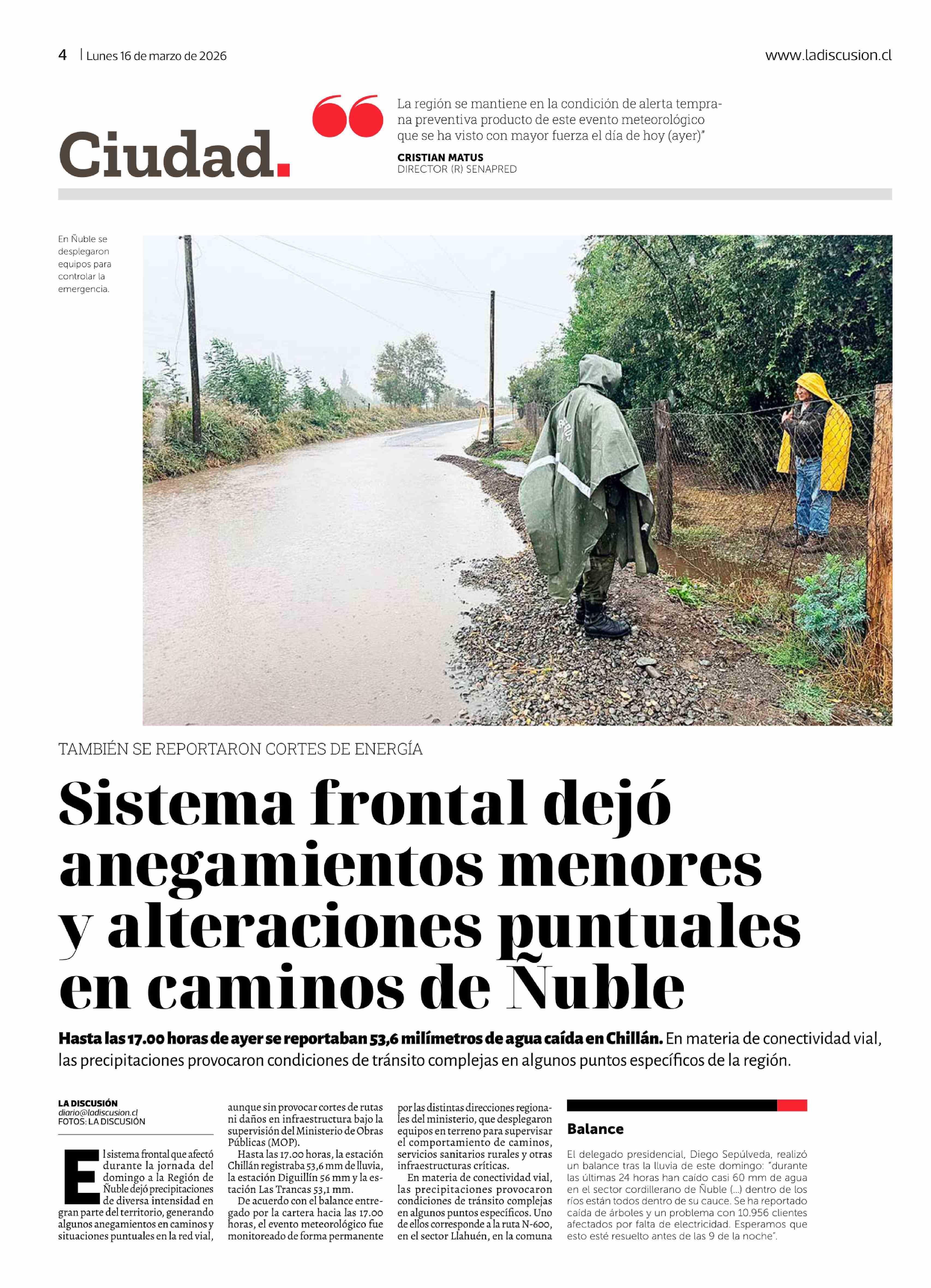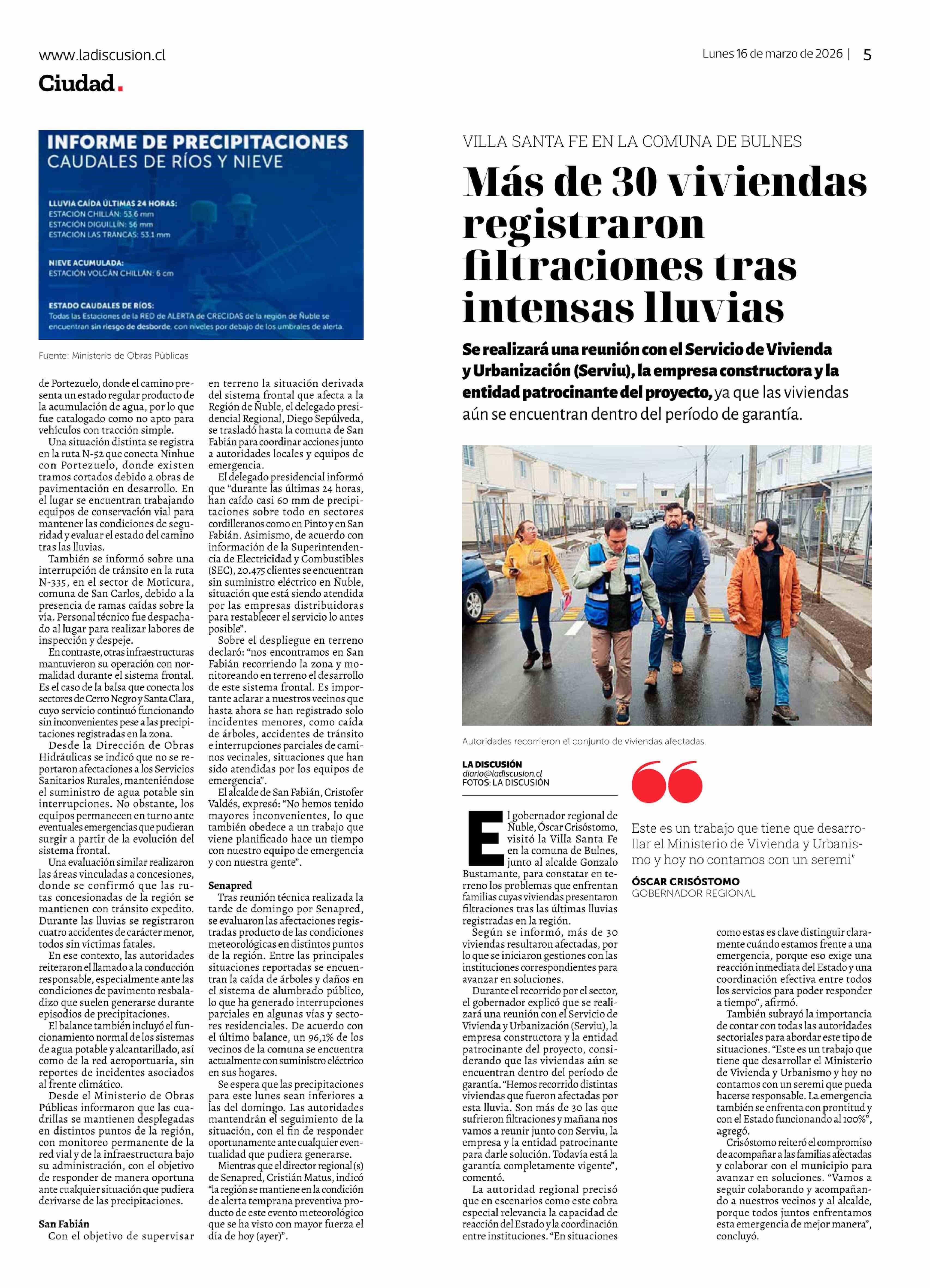 Fecha: 16-03-2026 Sector: Noticia general Región: Región del Ñuble