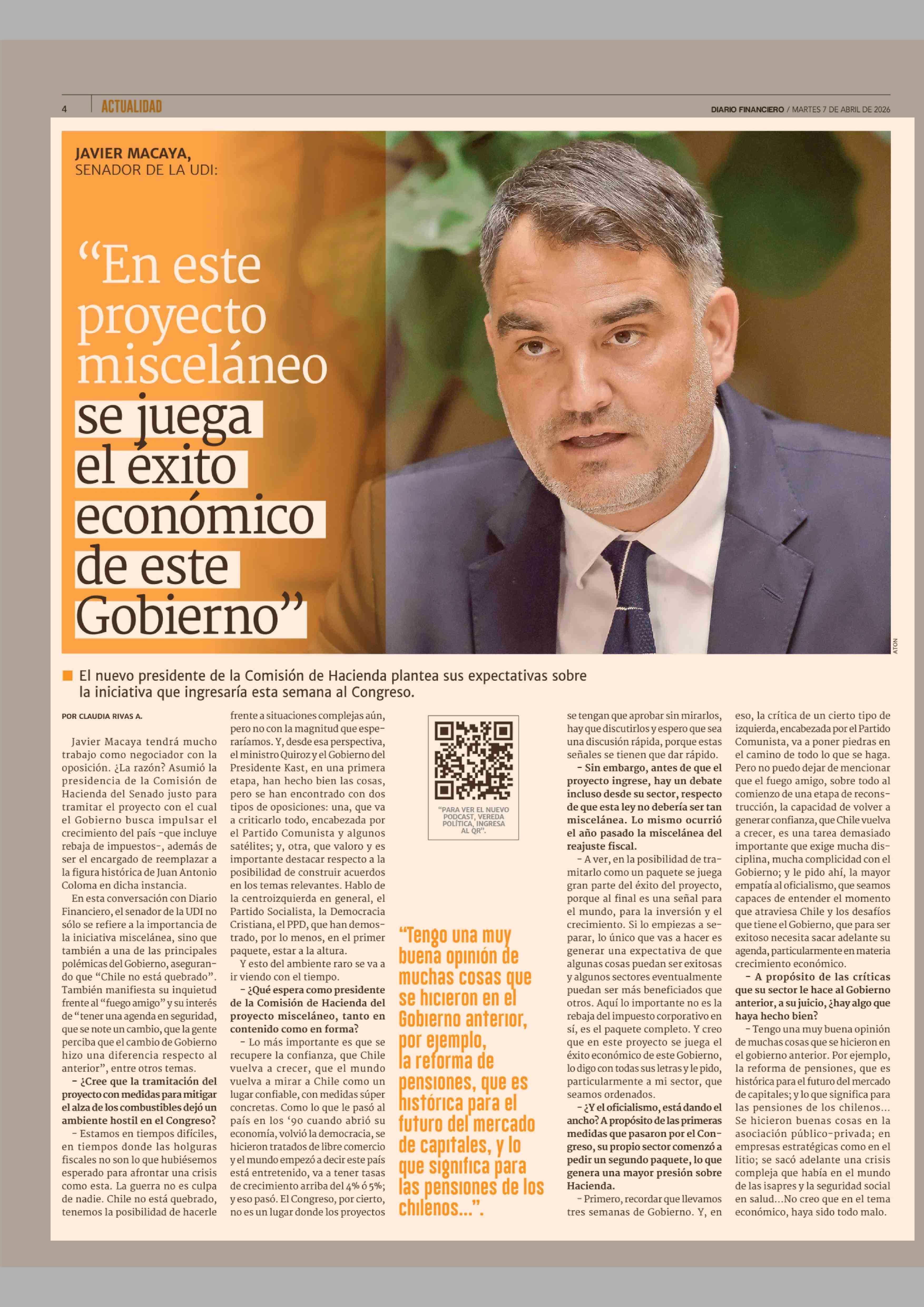 Fuente: Diario Financiero (Diario Financiero) Página(s): 4