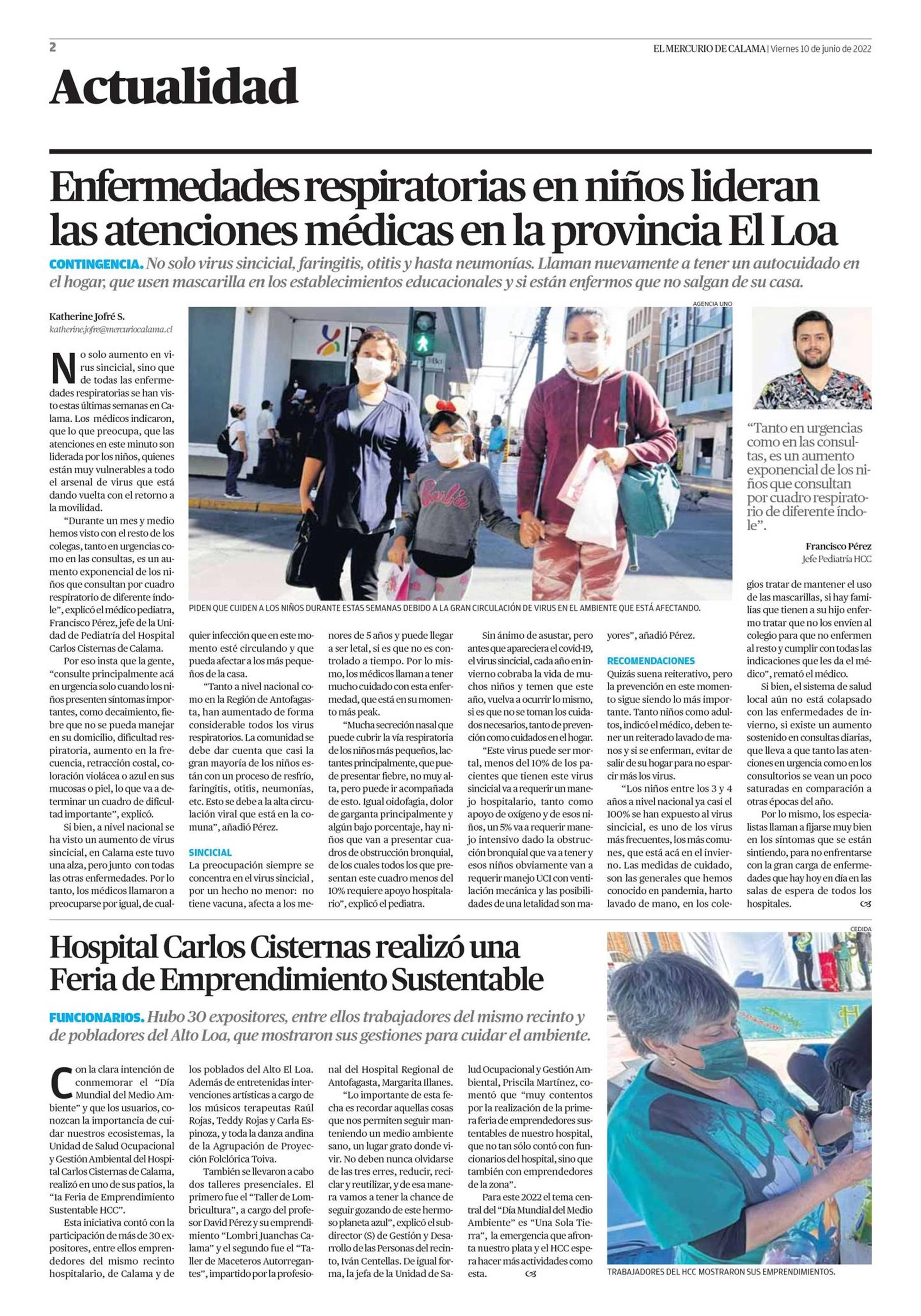 Enfermedades respiratorias en niños lideran las atenciones médicas en la provincia El Loa 10-06-2022 El Mercurio de Calama |