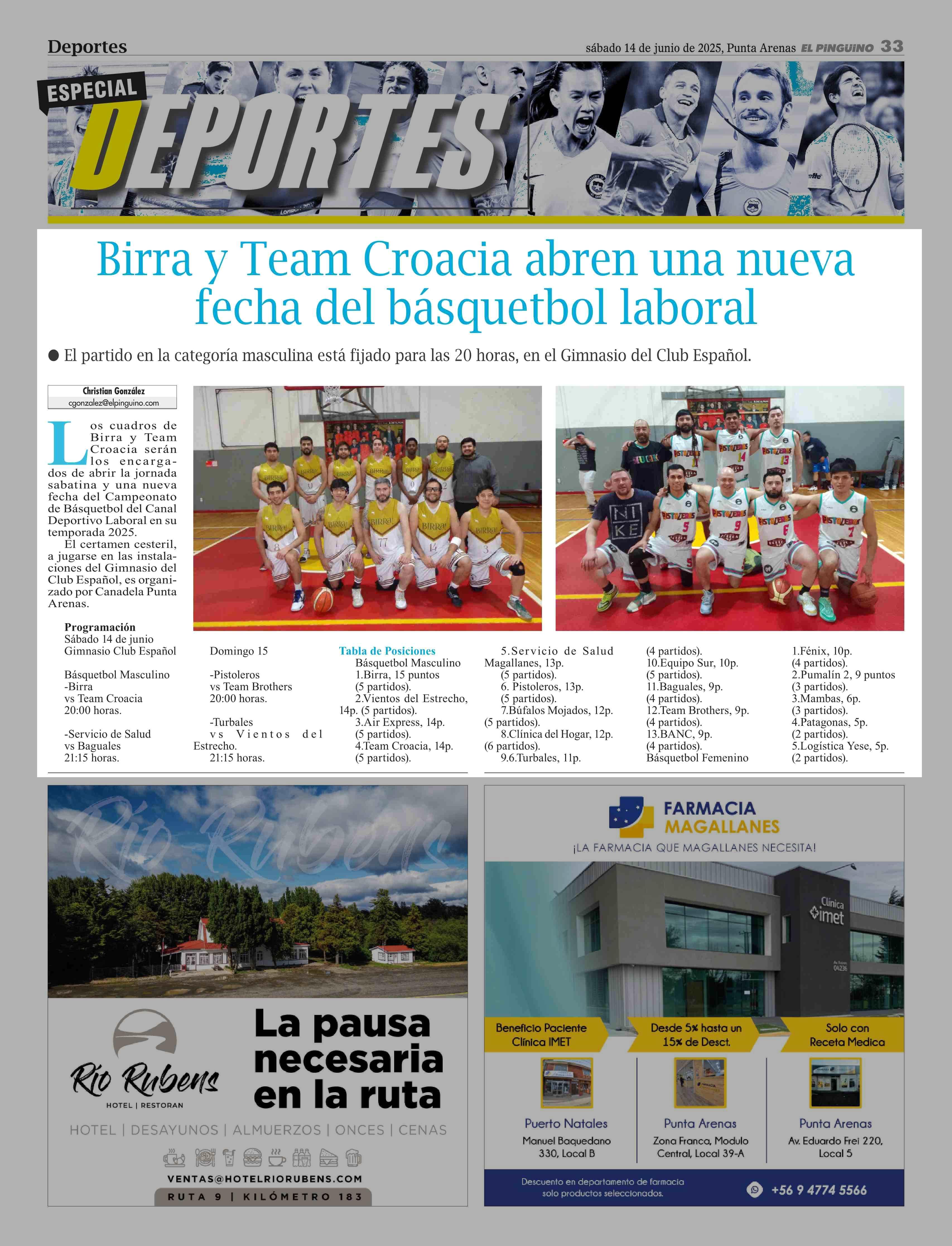 Birra y Team Croacia abren una nueva fecha del básquetbol laboral 14-06-2025 El Pingüino |