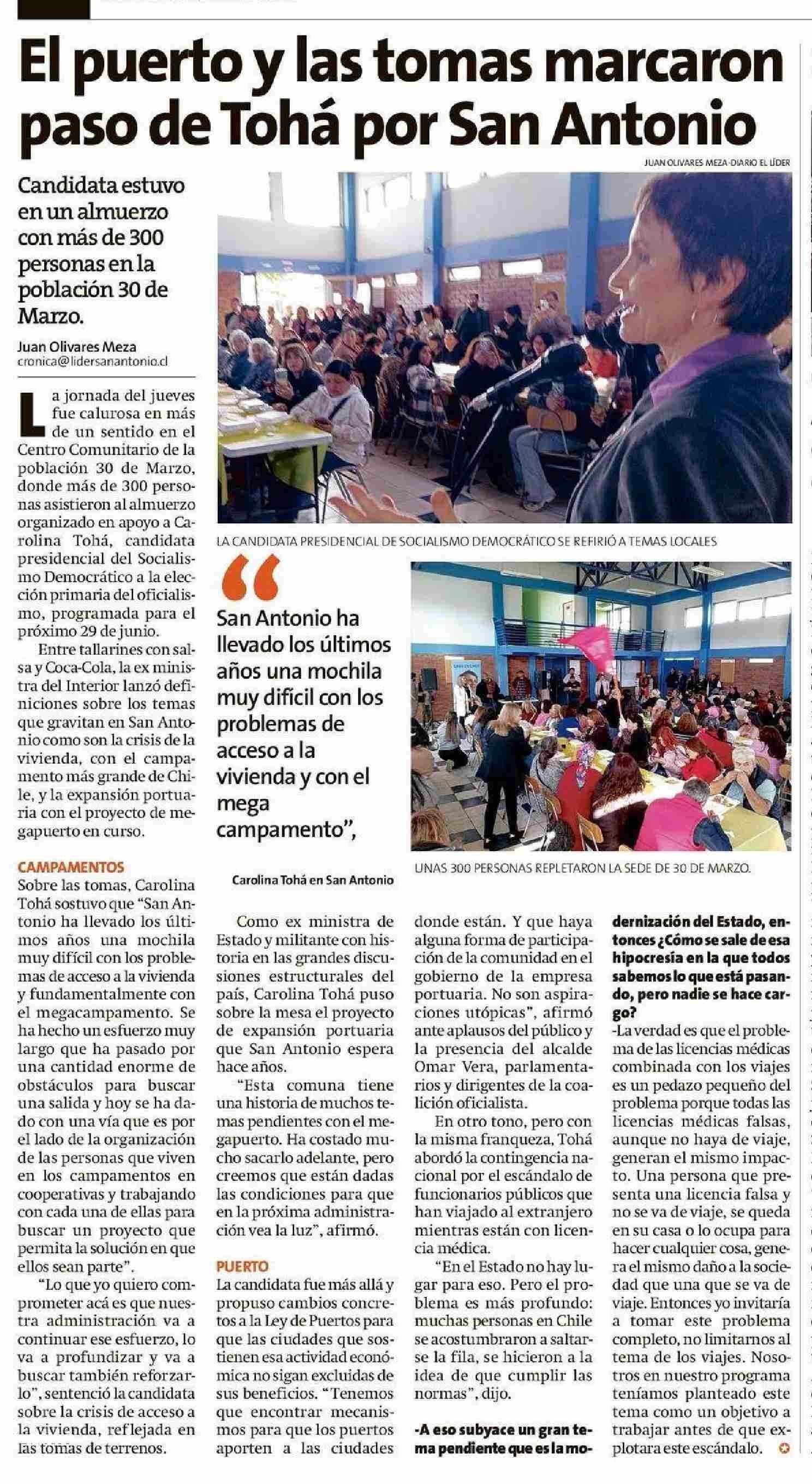 | Título: | El puerto y las tomas marcaron paso de Tohá por San Antonio |