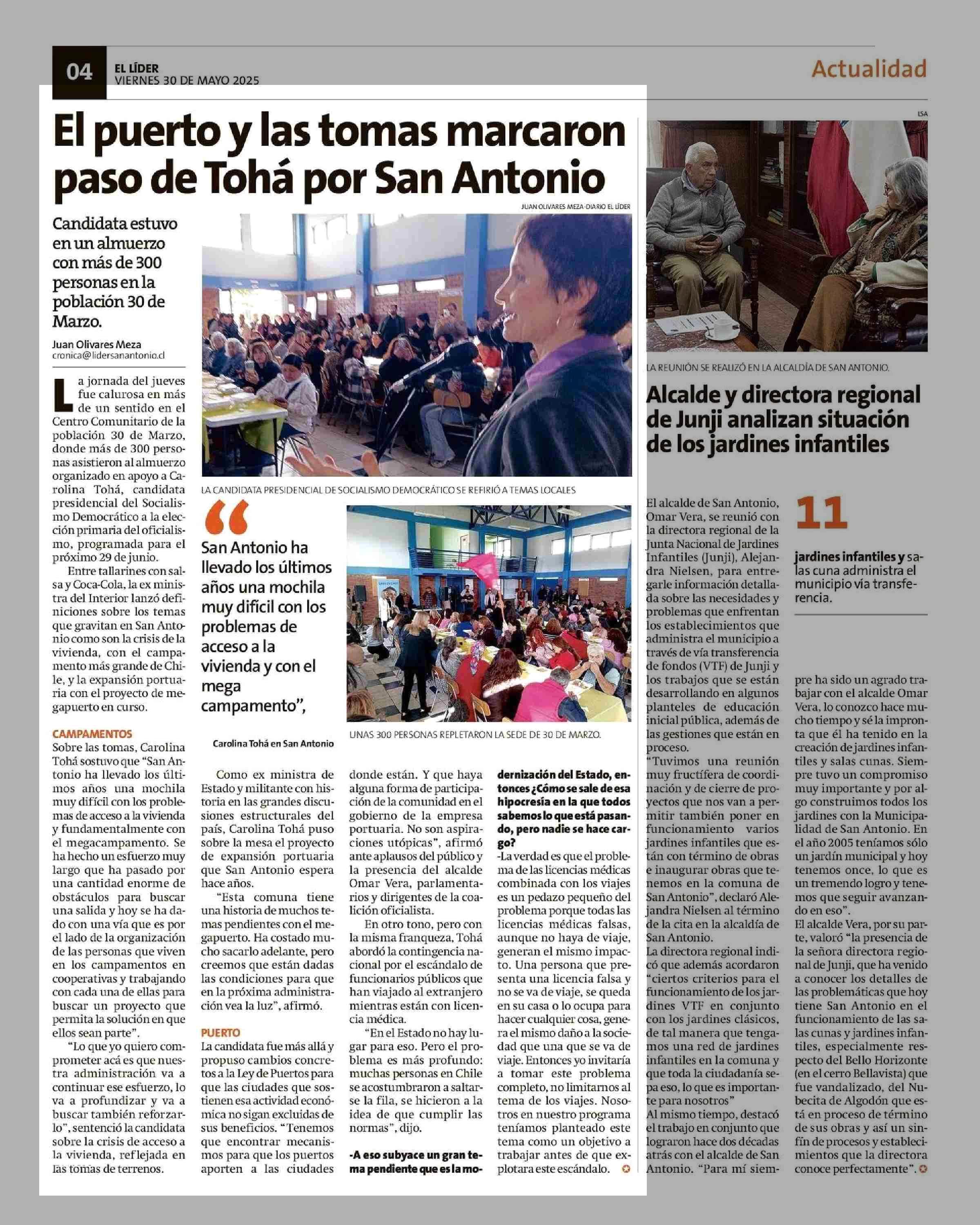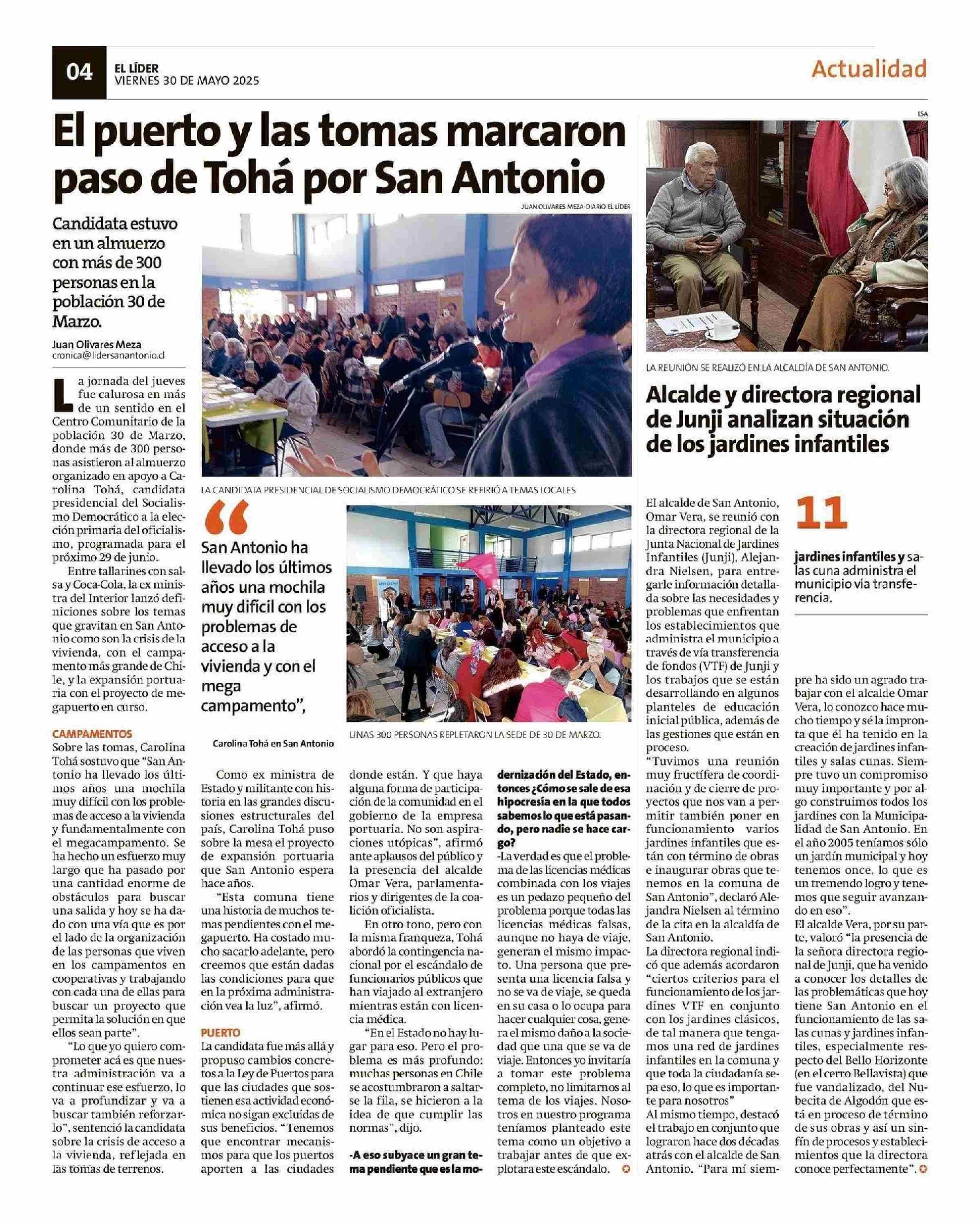 El puerto y las tomas marcaron paso de Tohá por San Antonio 30-05-2025 El Líder |