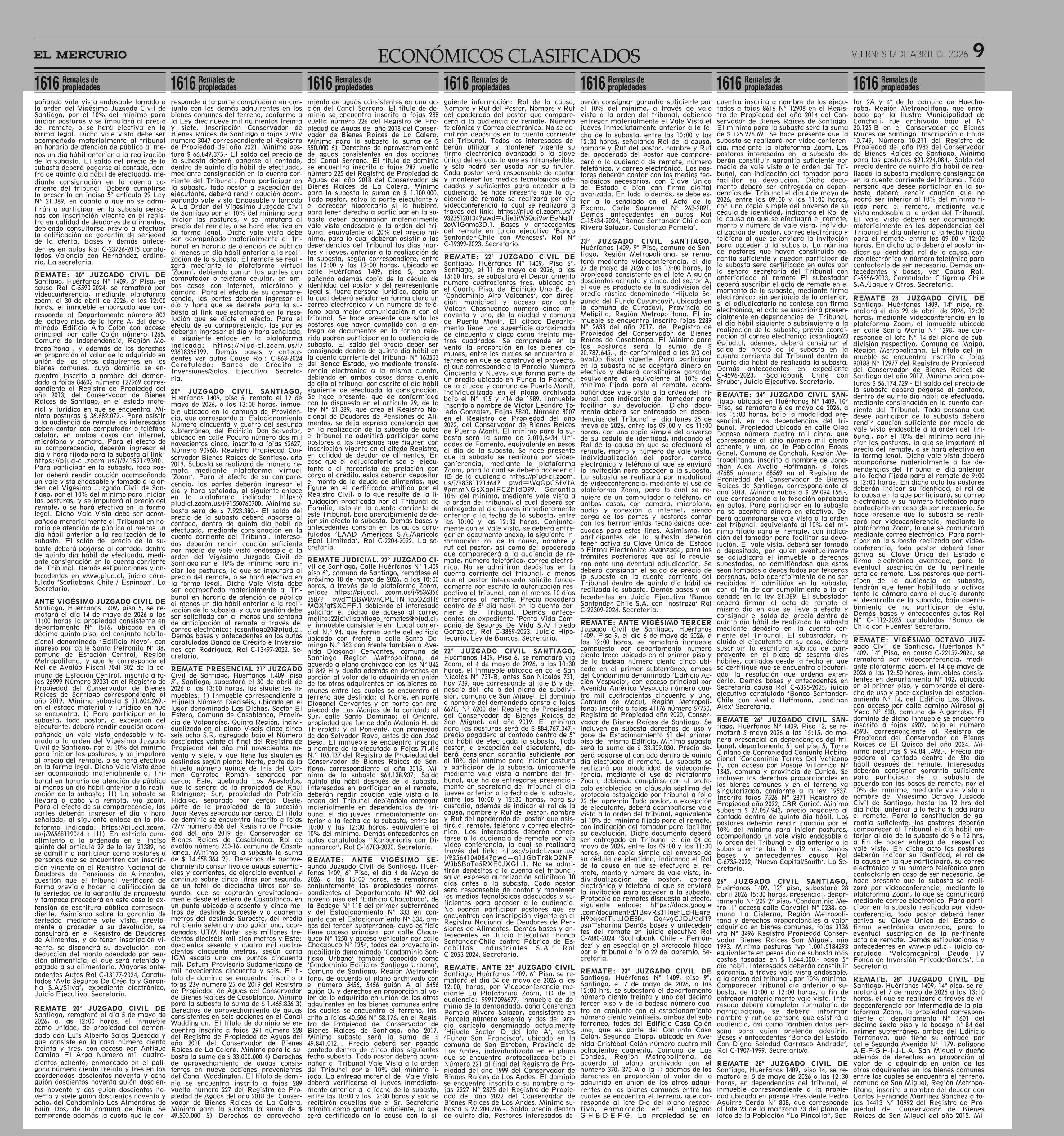 REMATES: 1616 Remates de propiedades 17-04-2026 El Mercurio |