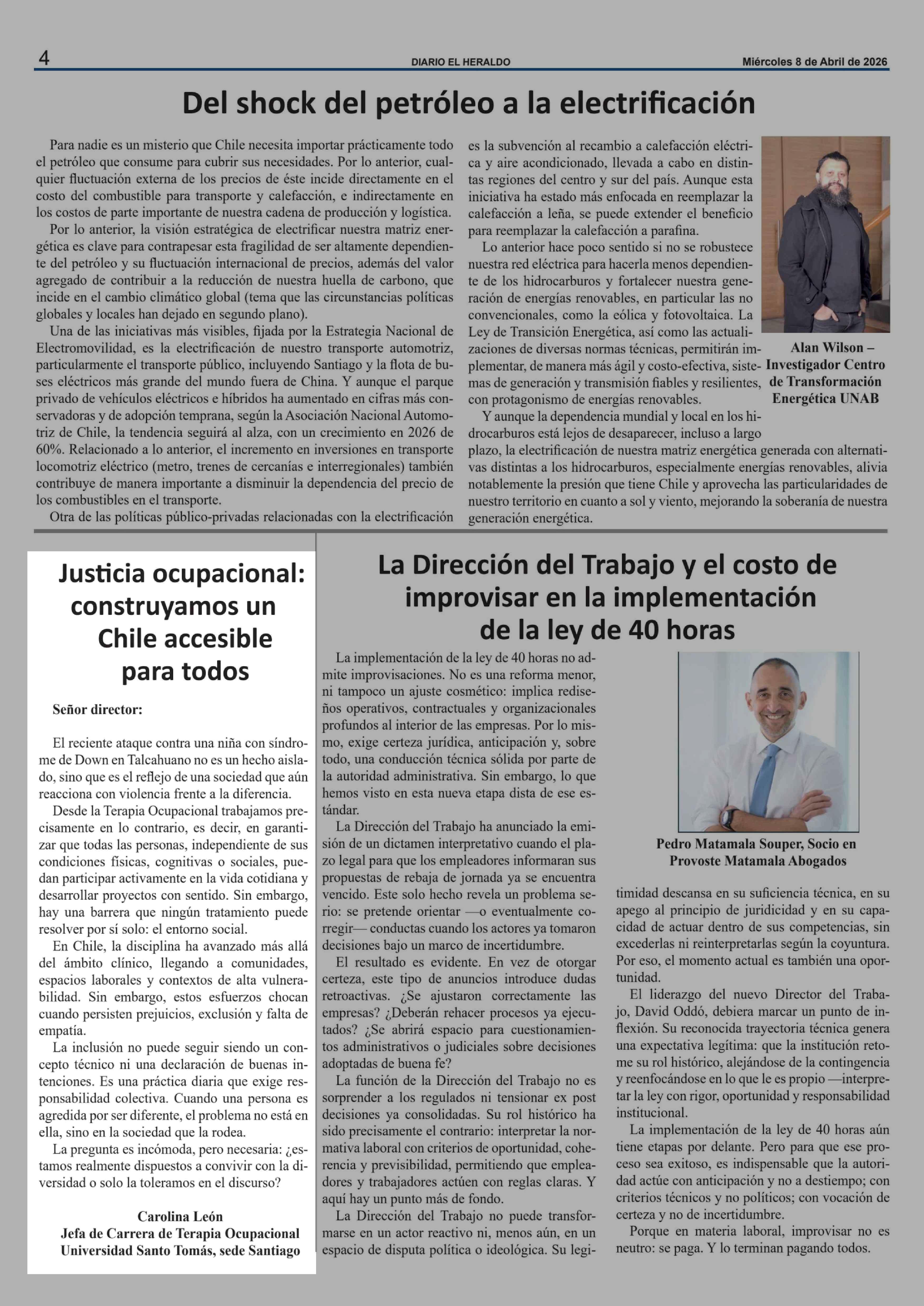 Cartas: Justicia ocupacional: construyamos un Chile accesible para todos 08-04-2026 El Heraldo |