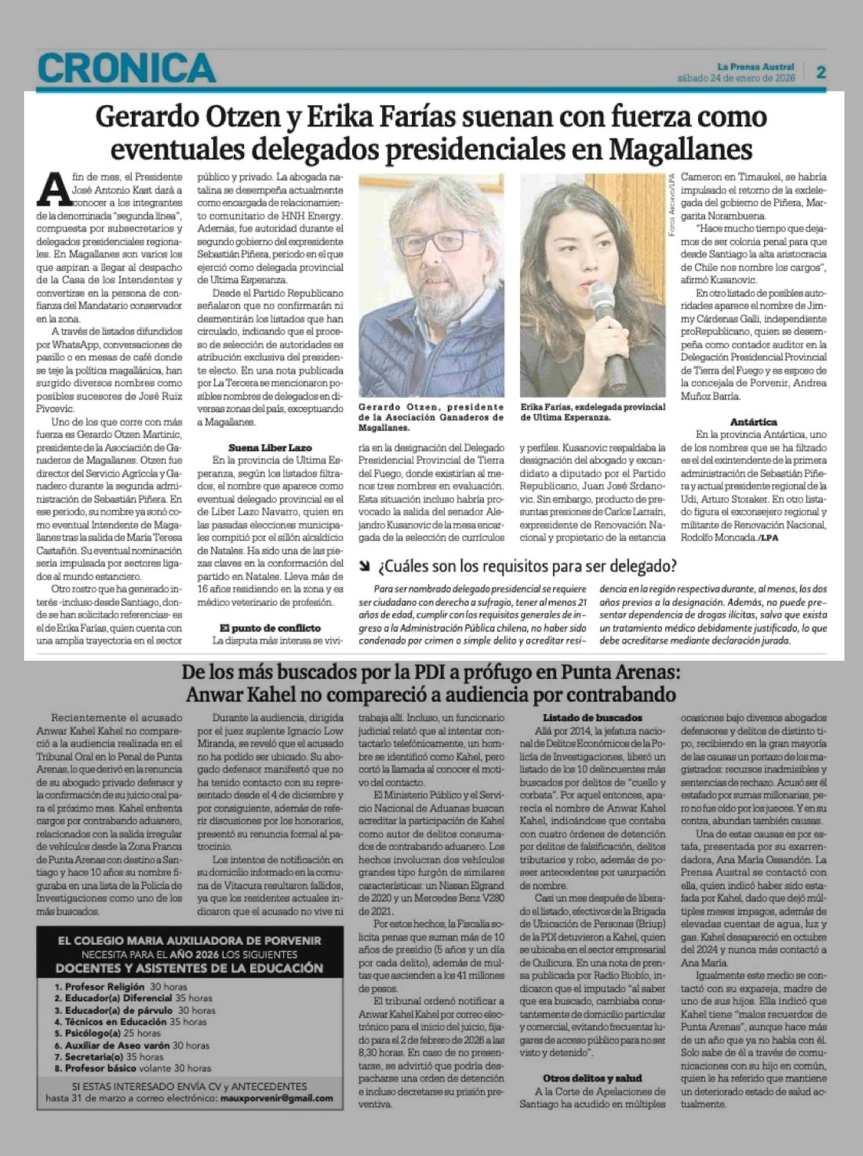 Fecha: 24-01-2026 Sector: Noticia general Región: Región de Magallanes y de la Antártica Chilena