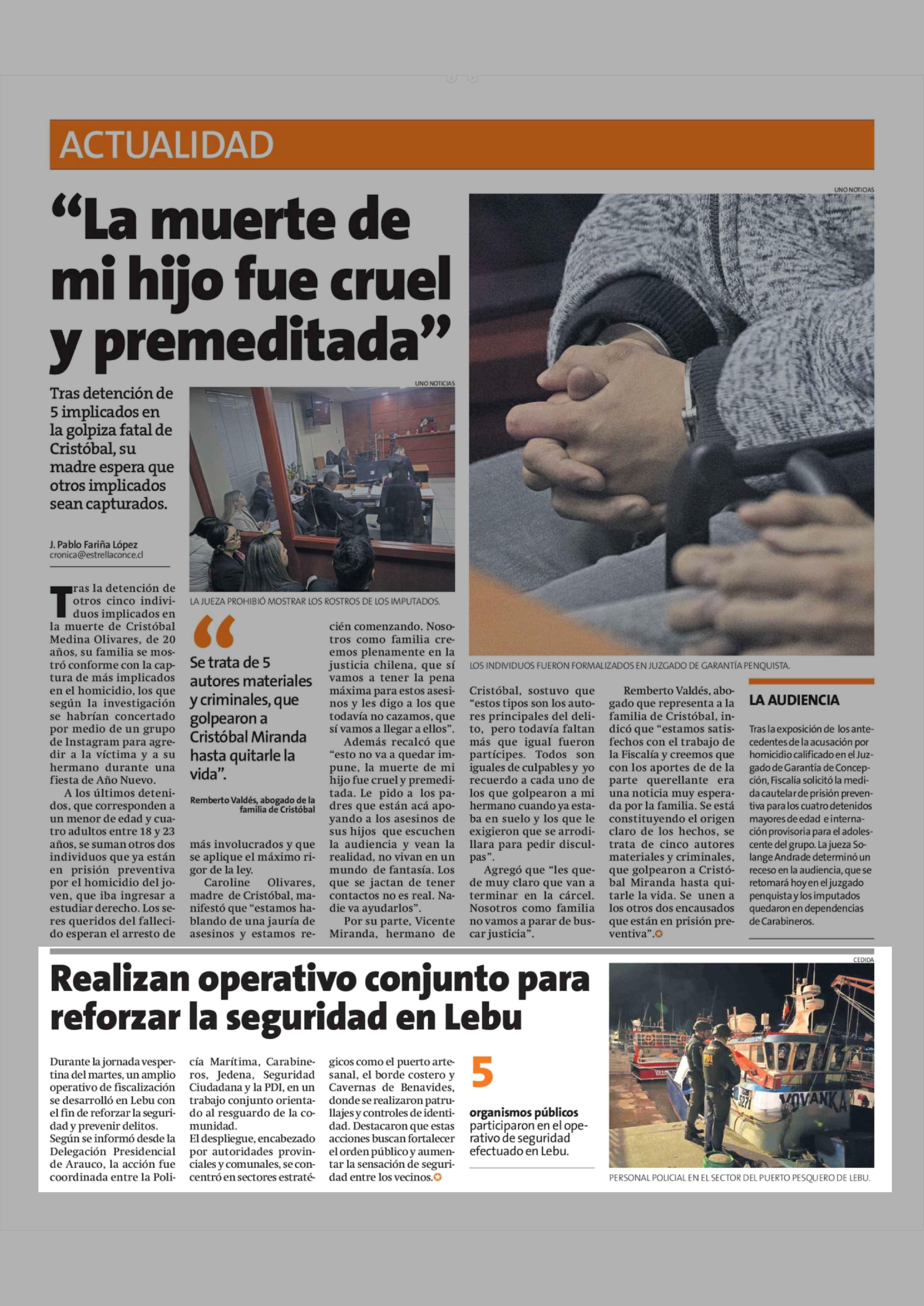 Realizan operativo conjunto para reforzar la seguridad en Lebu 26-03-2026 La Estrella de Concepción |