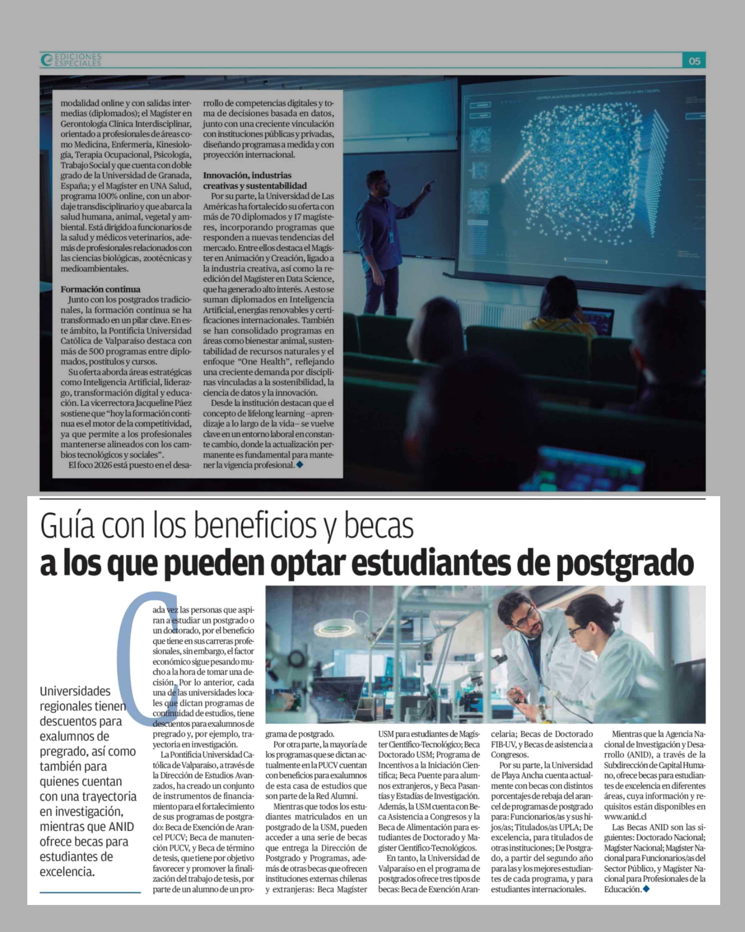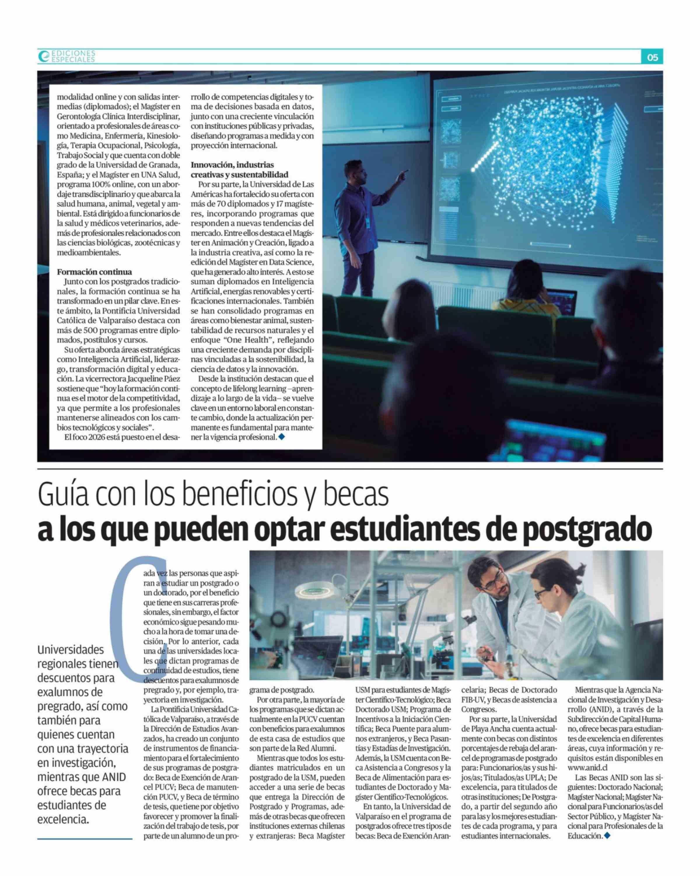 Guía con los beneficios y becas a los que pueden optar estudiantes de postgrado 22-03-2026 El Mercurio de Valparaíso |