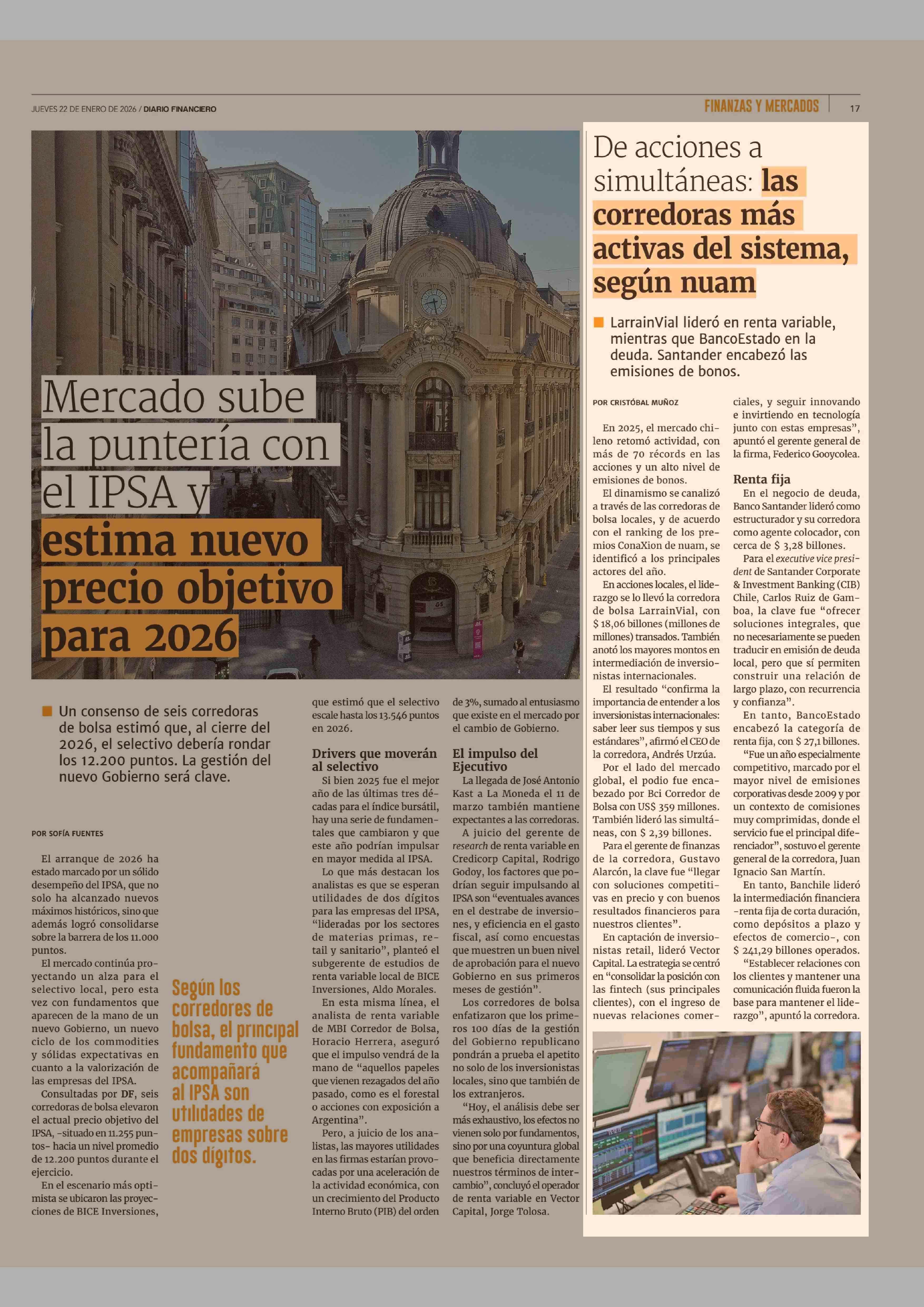 De acciones a simultáneas: las corredoras más activas del sistema, según nuam 22-01-2026 Diario Financiero |
