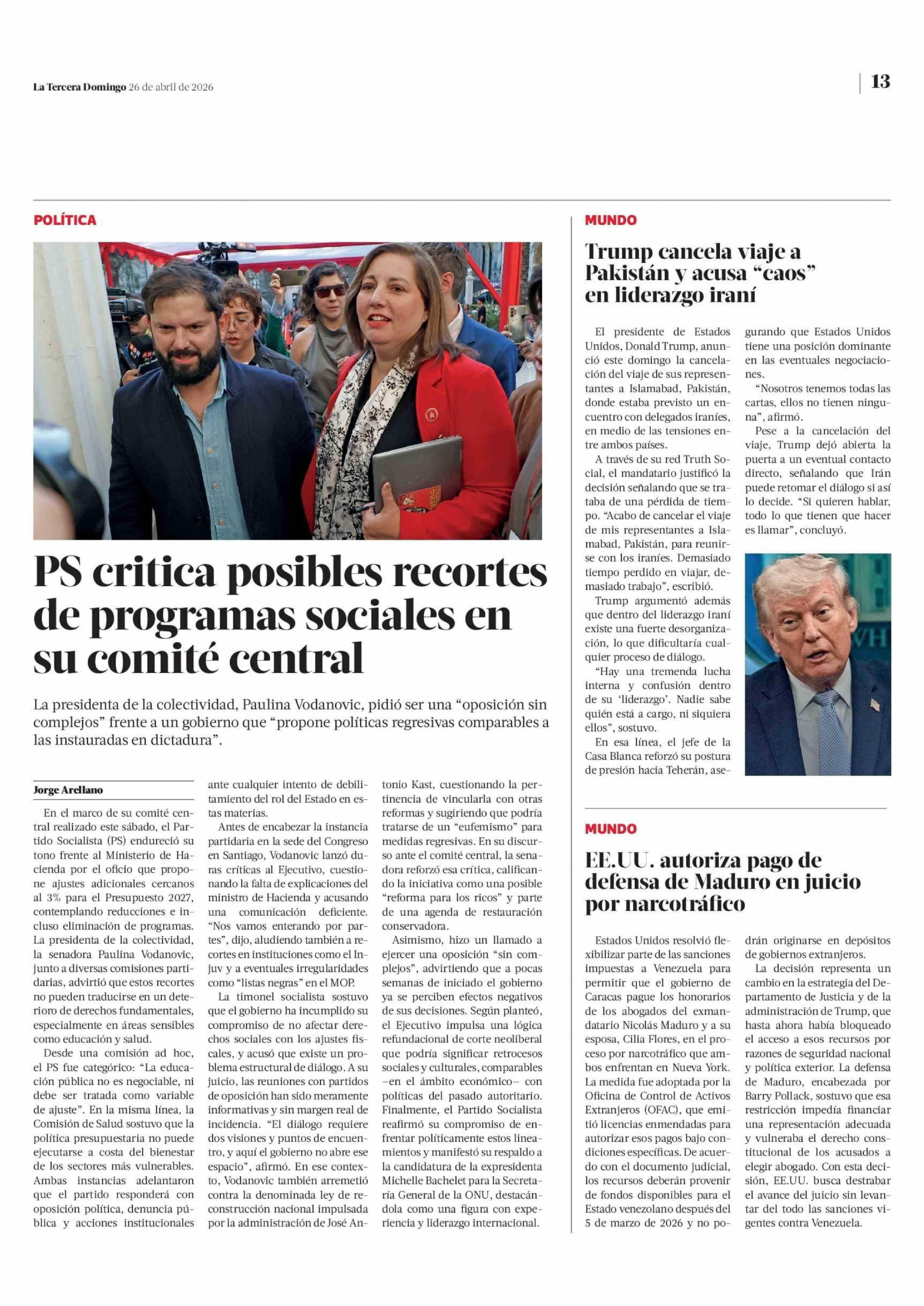 PS critica posibles recortes de programas sociales en su comité central 26-04-2026 La Tercera |