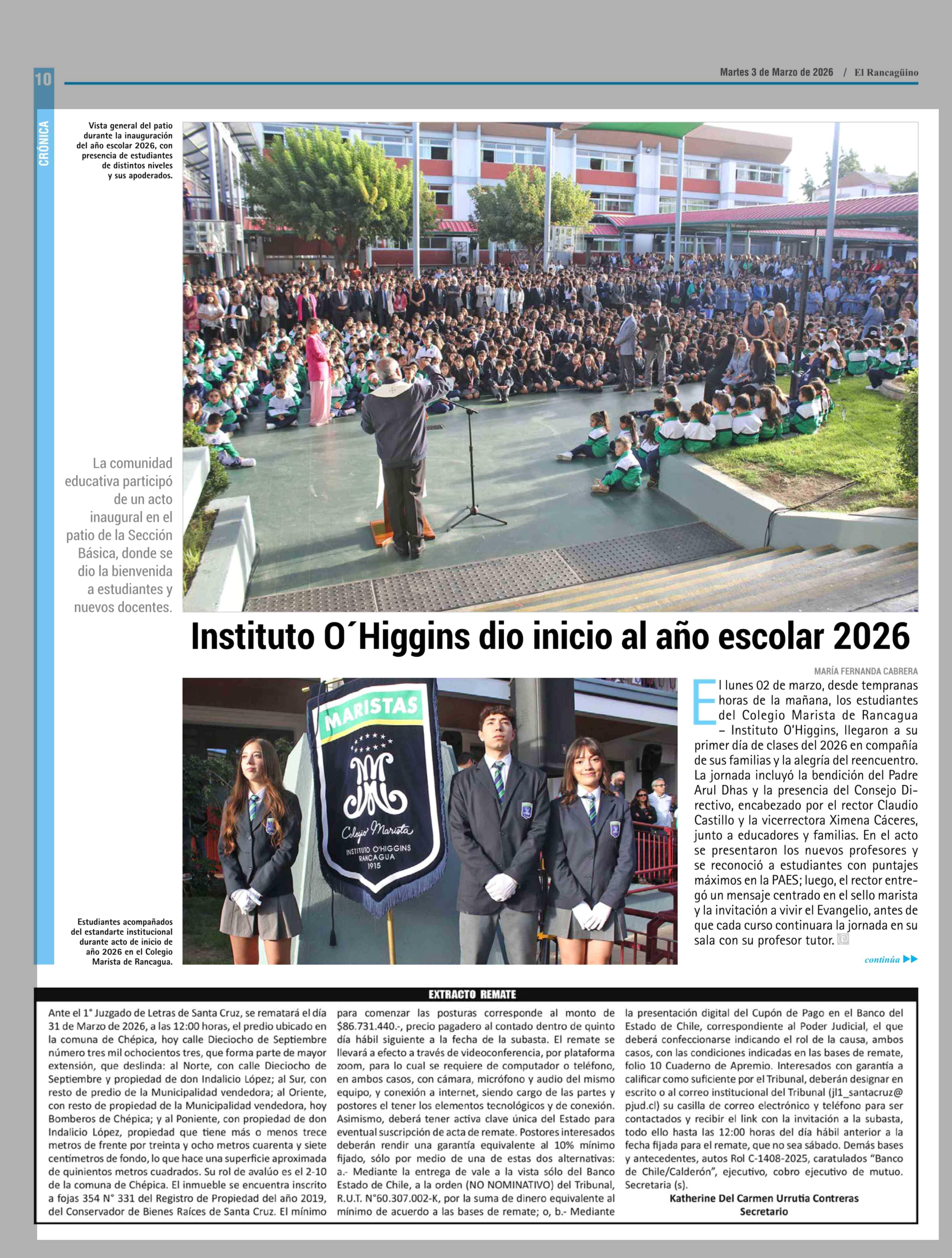 | Fecha: | 03-03-2026 | Sector: | Noticia general | Región: | Región del Libertador General Bernardo O'Higgins |