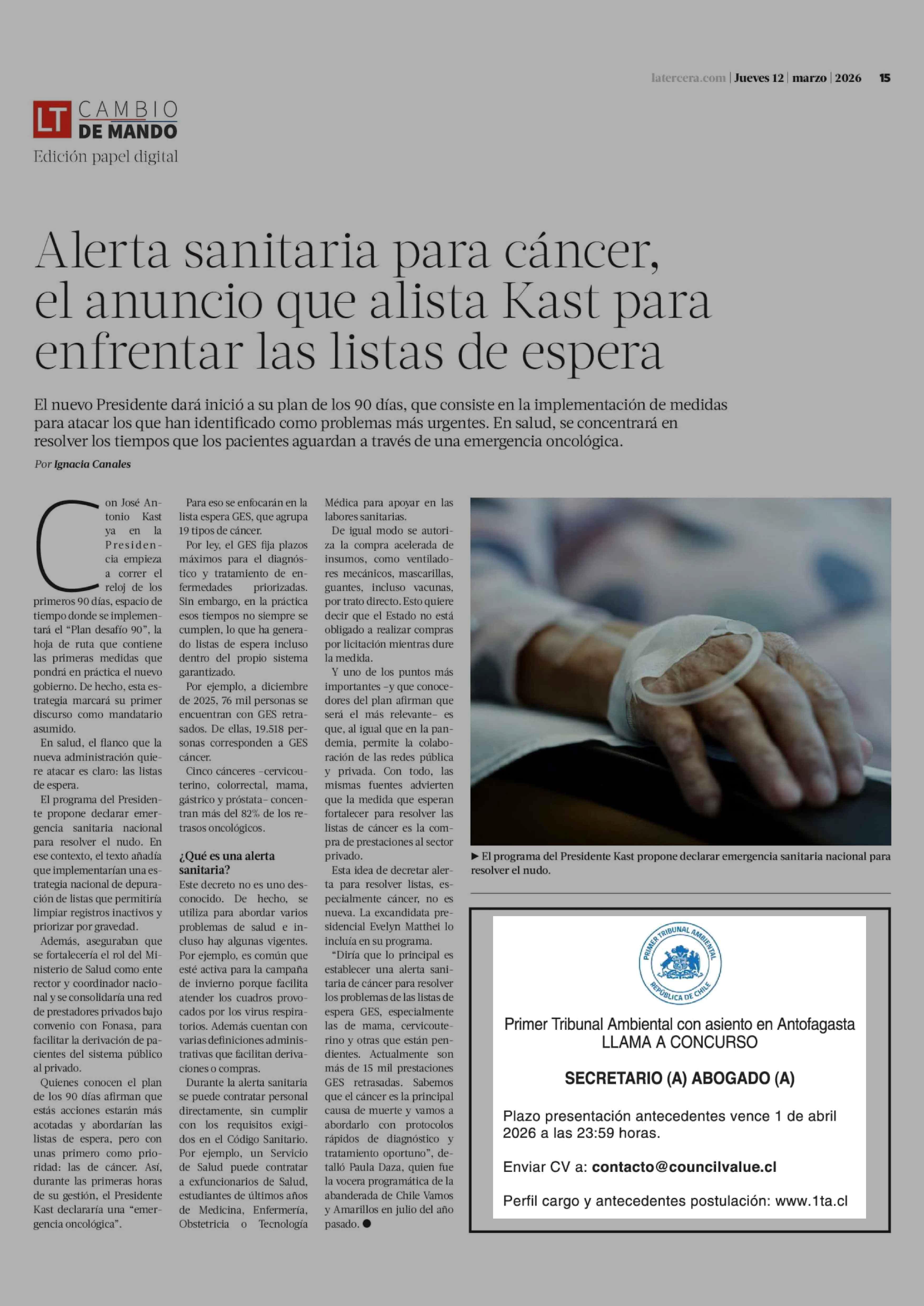 Aviso Licitaciones: Primer Tribunal Ambiental con asiento en Antofagasta 12-03-2026 La Tercera |