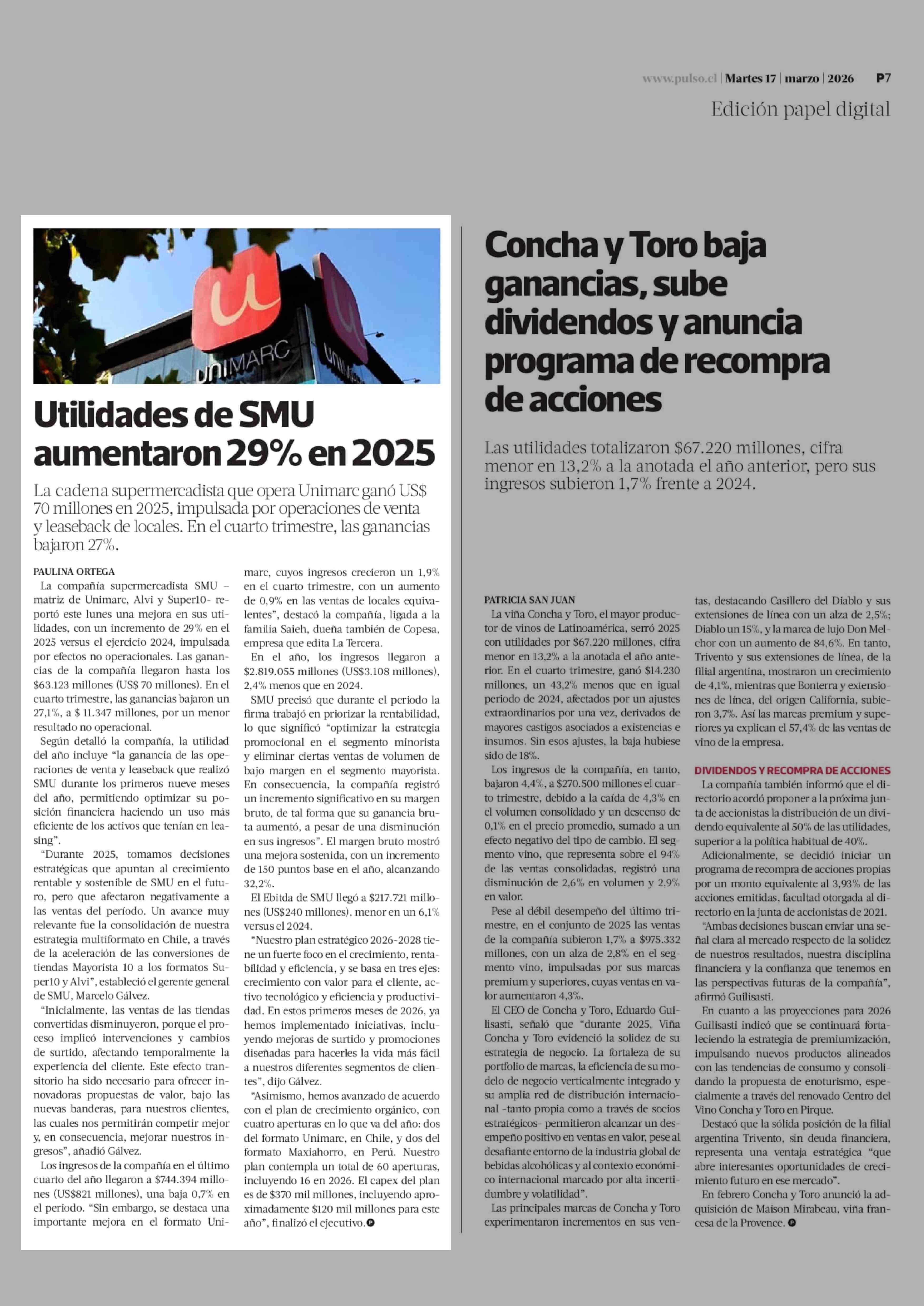 Título: Utilidades de SMU aumentaron 29% en 2025