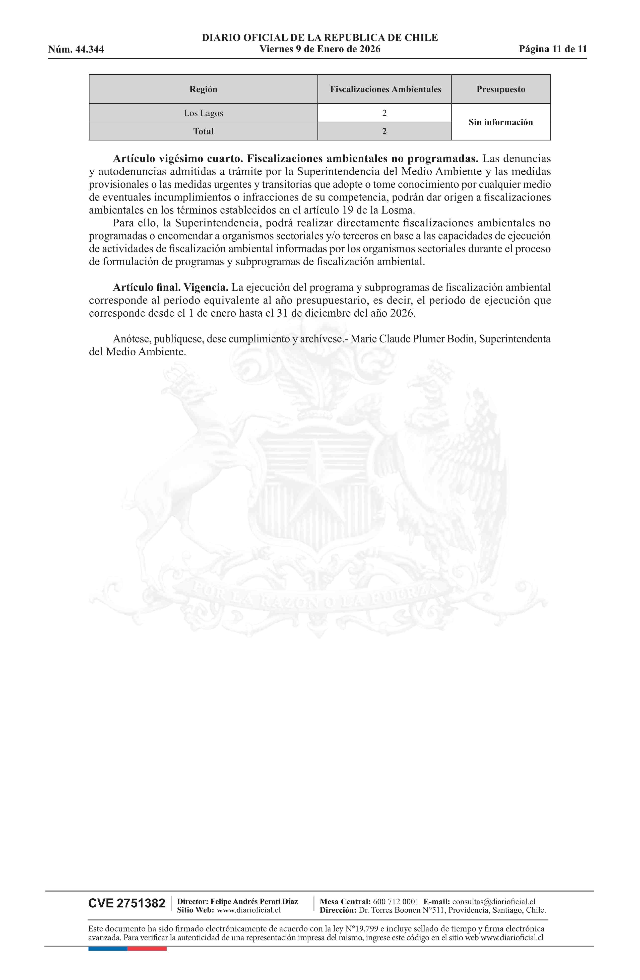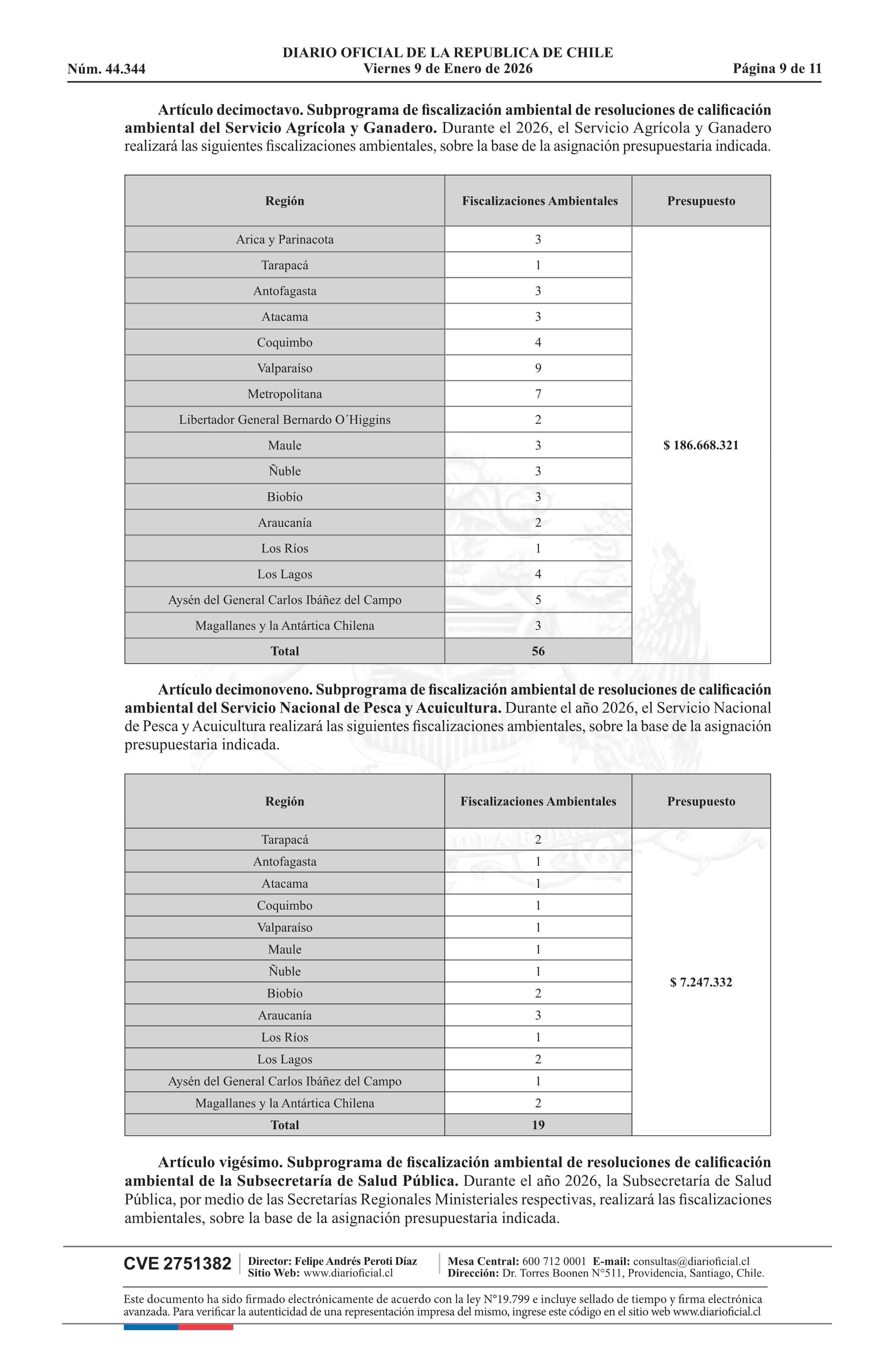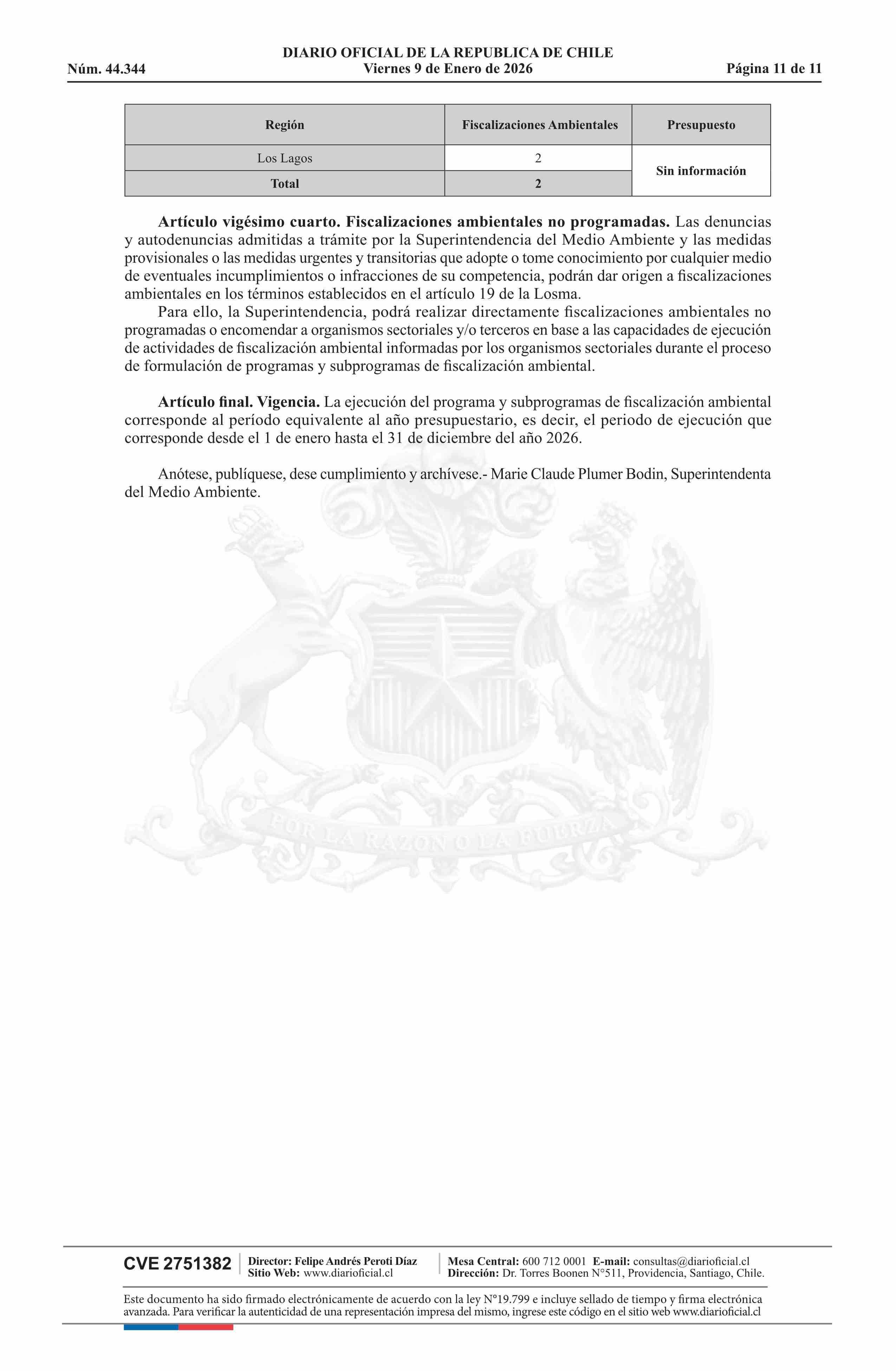 Título: AVISO LICITACIONES: Resolución exenta número 2.999, de 2025.- Fija programa y subprogramas de fiscalización ambiental de resoluciones de calificación ambiental para el año 2026