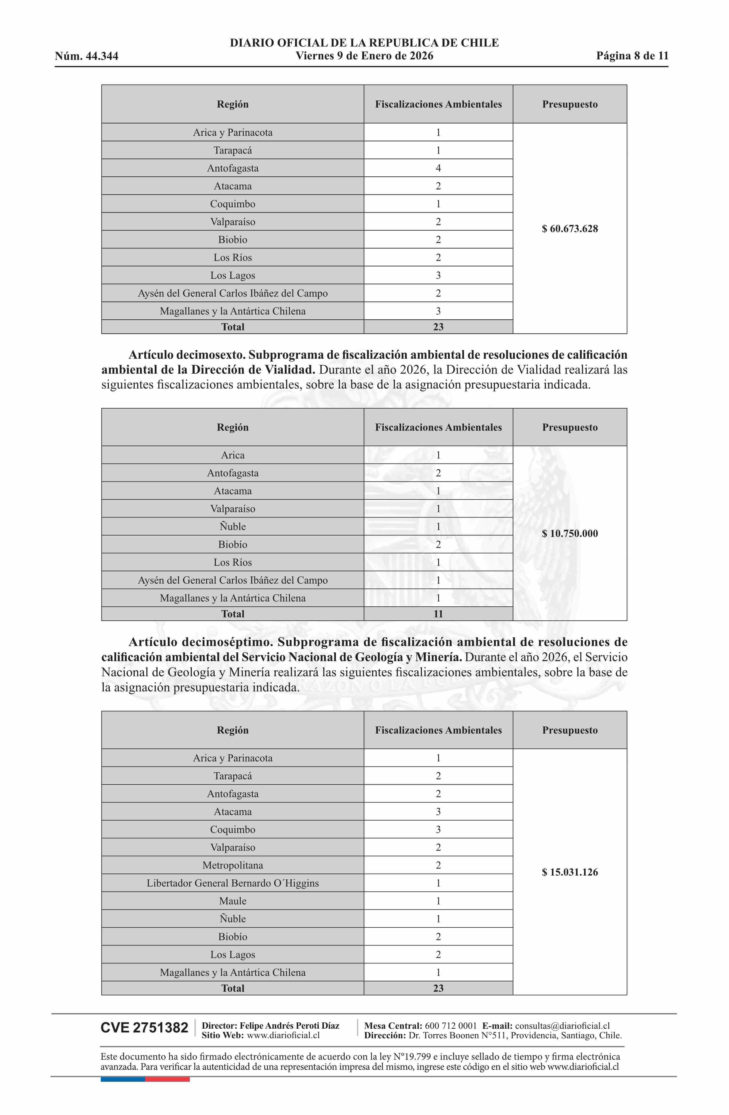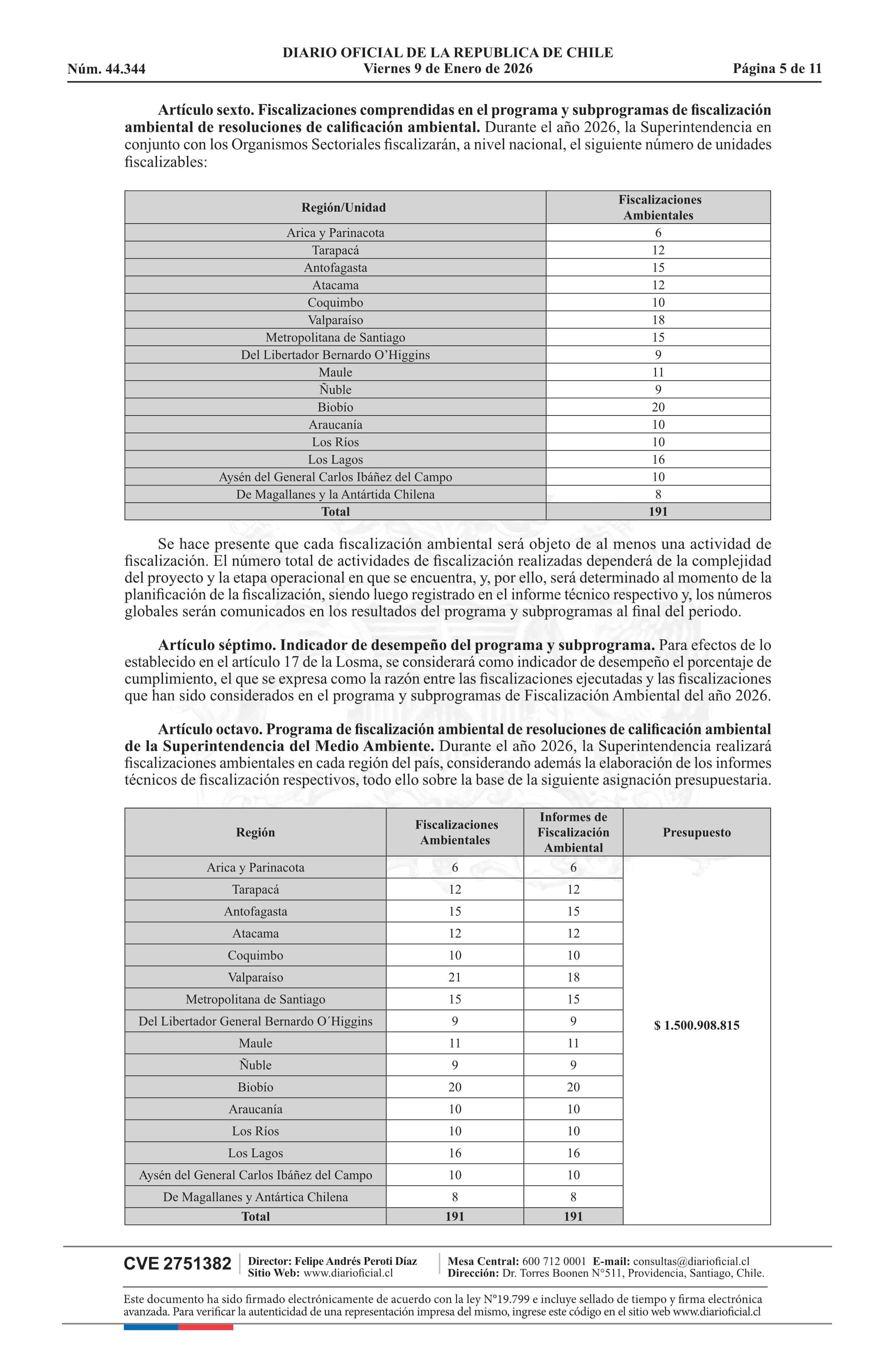 AVISO LICITACIONES: Resolución exenta número 2.999, de 2025.- Fija programa y subprogramas de fiscalización ambiental de resoluciones de calificación ambiental para el año 2026