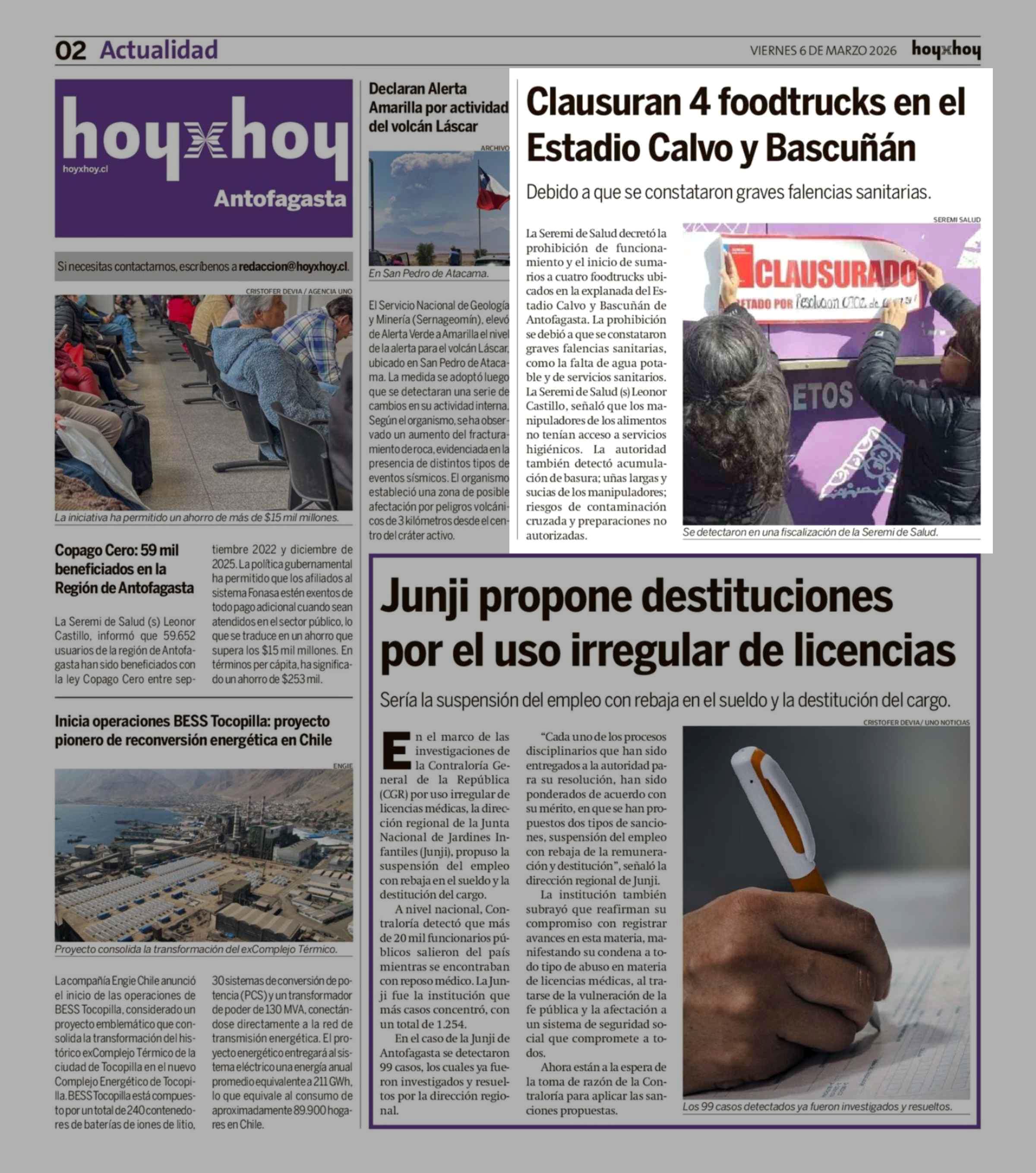 | Fuente: | Hoy x Hoy Antofagasta (Hoy x Hoy Antofagasta) | Página(s): | 2 |
