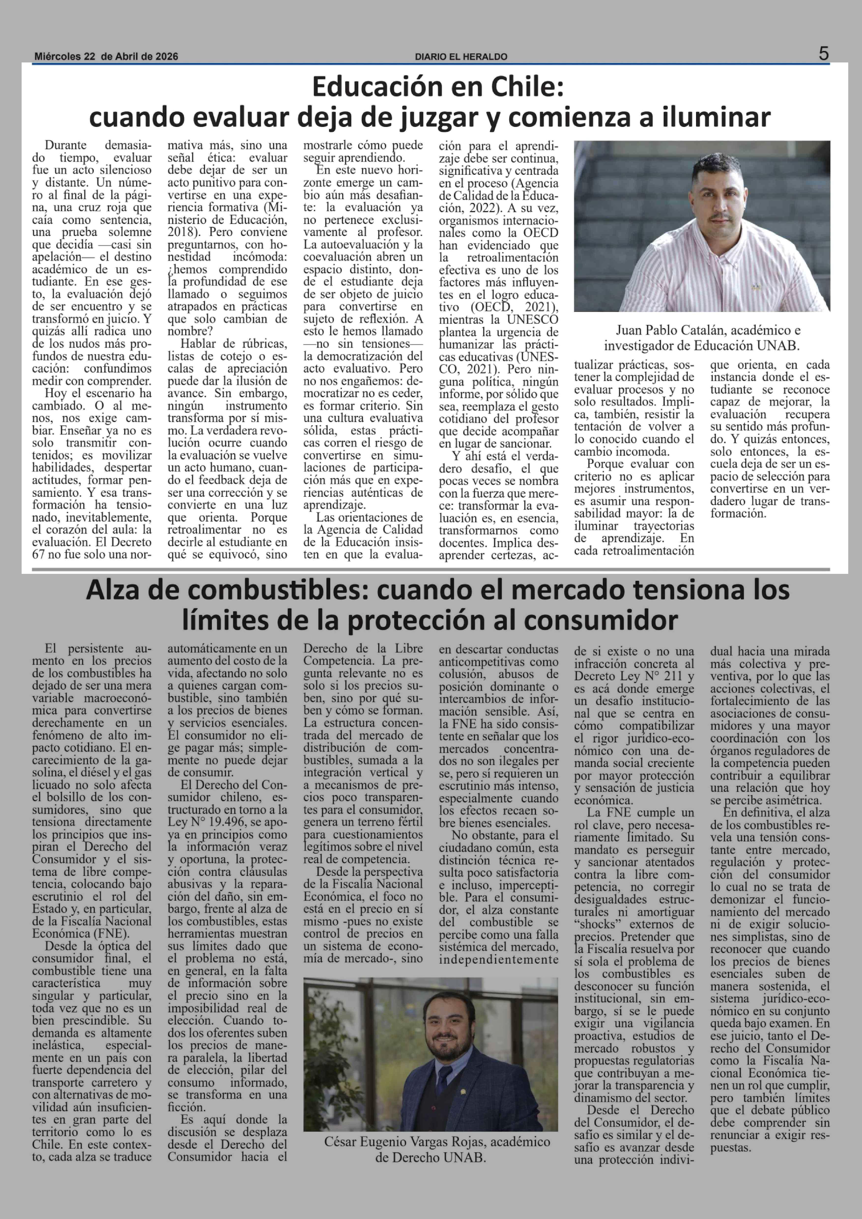 Educación en Chile: cuando evaluar deja de juzgar y comienza a iluminar 22-04-2026 El Heraldo |