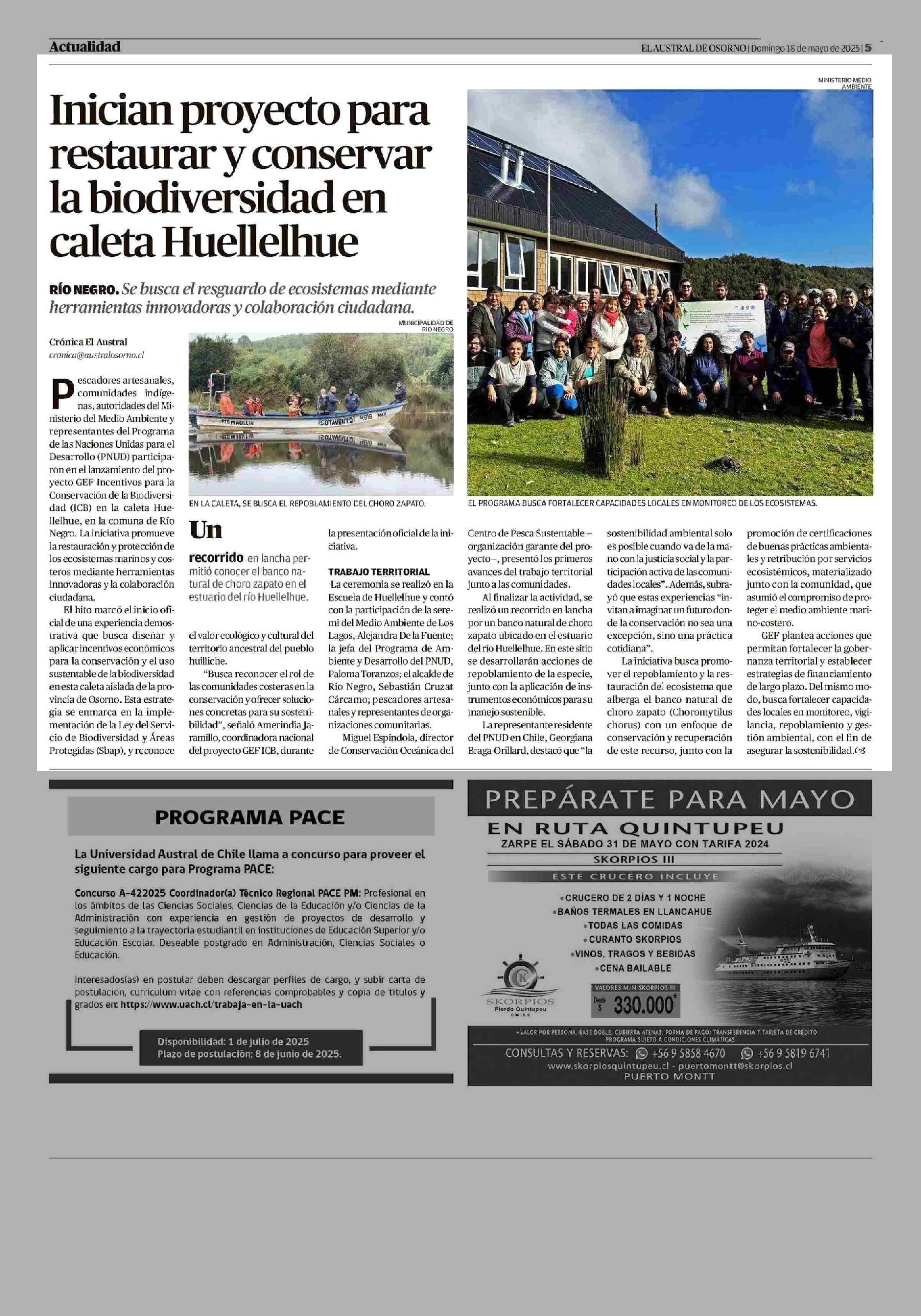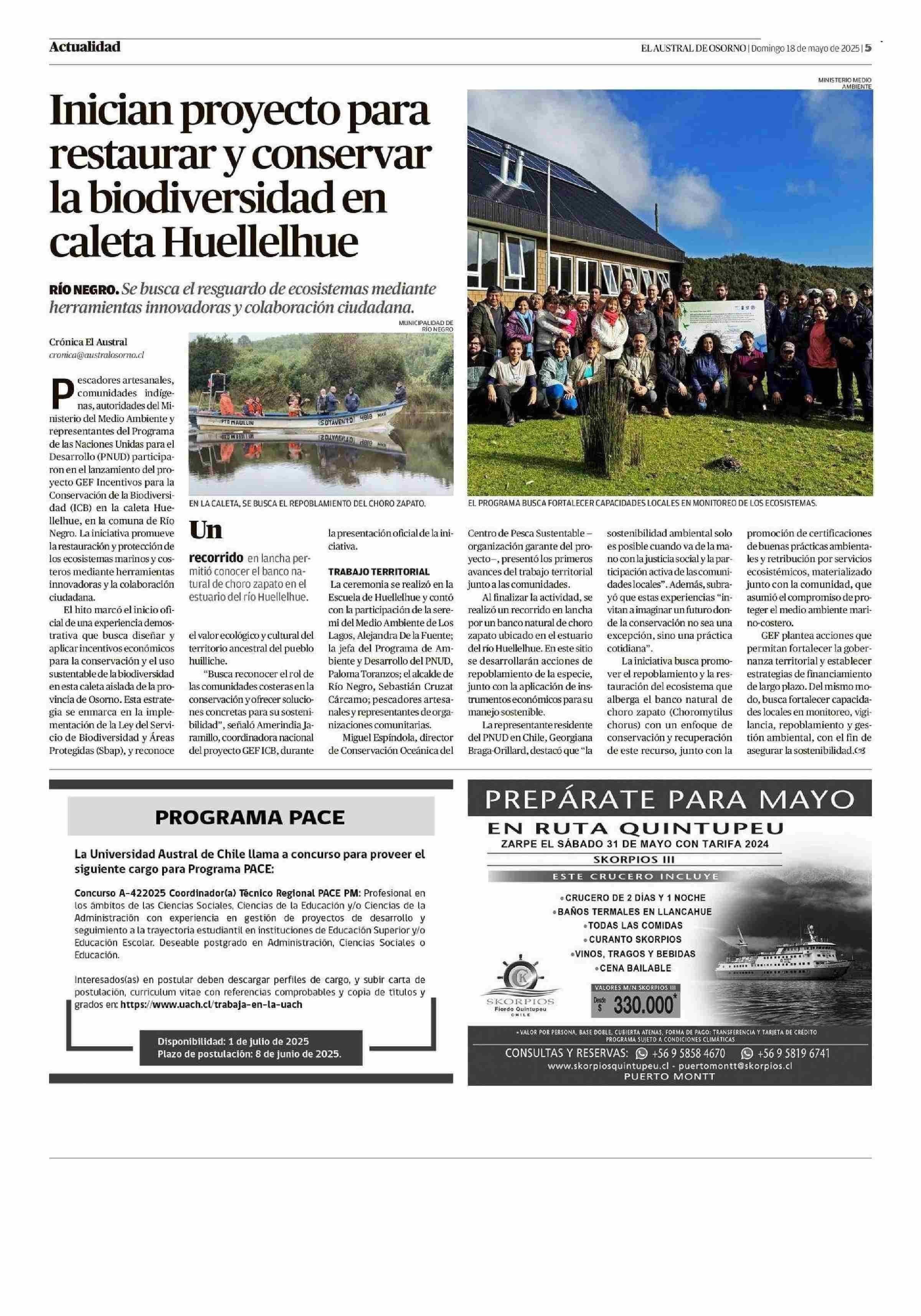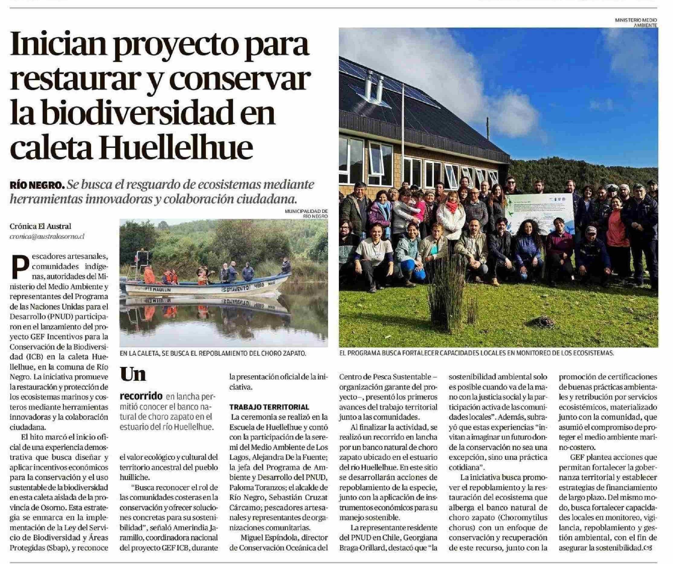 Inician proyecto para caleta Huellelhue la biodiversidad en restaurar y conservar 18-05-2025 El Austral de Osorno |