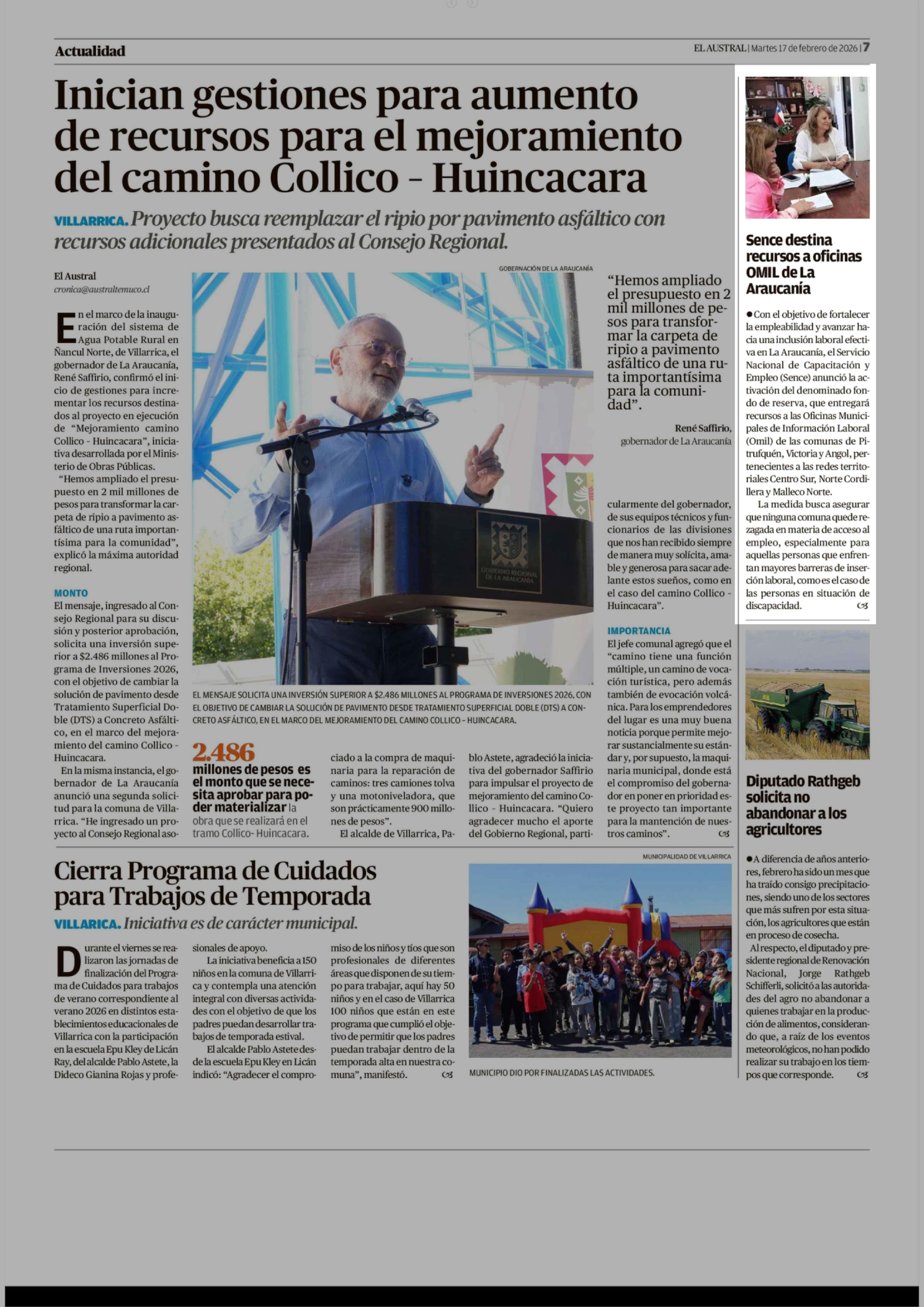 Sence destina recursos a oficinas OMIL de La Araucania 17-02-2026 El Austral de la Araucanía |