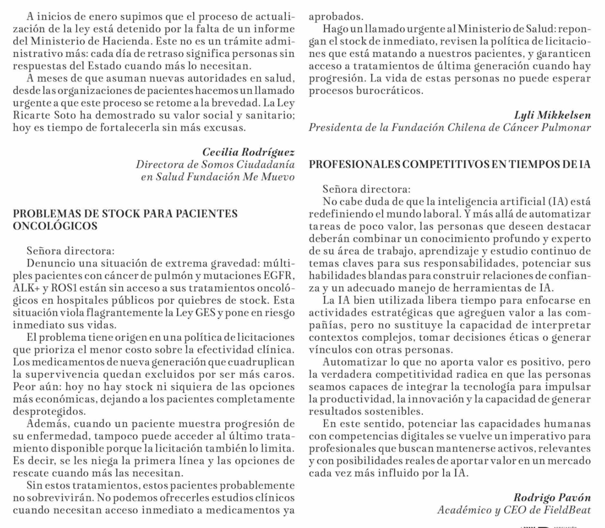 Cartas: PROBLEMAS DE STOCK PARA PACIENTES ONCOLÓGICOS 09-01-2026 La Tribuna |