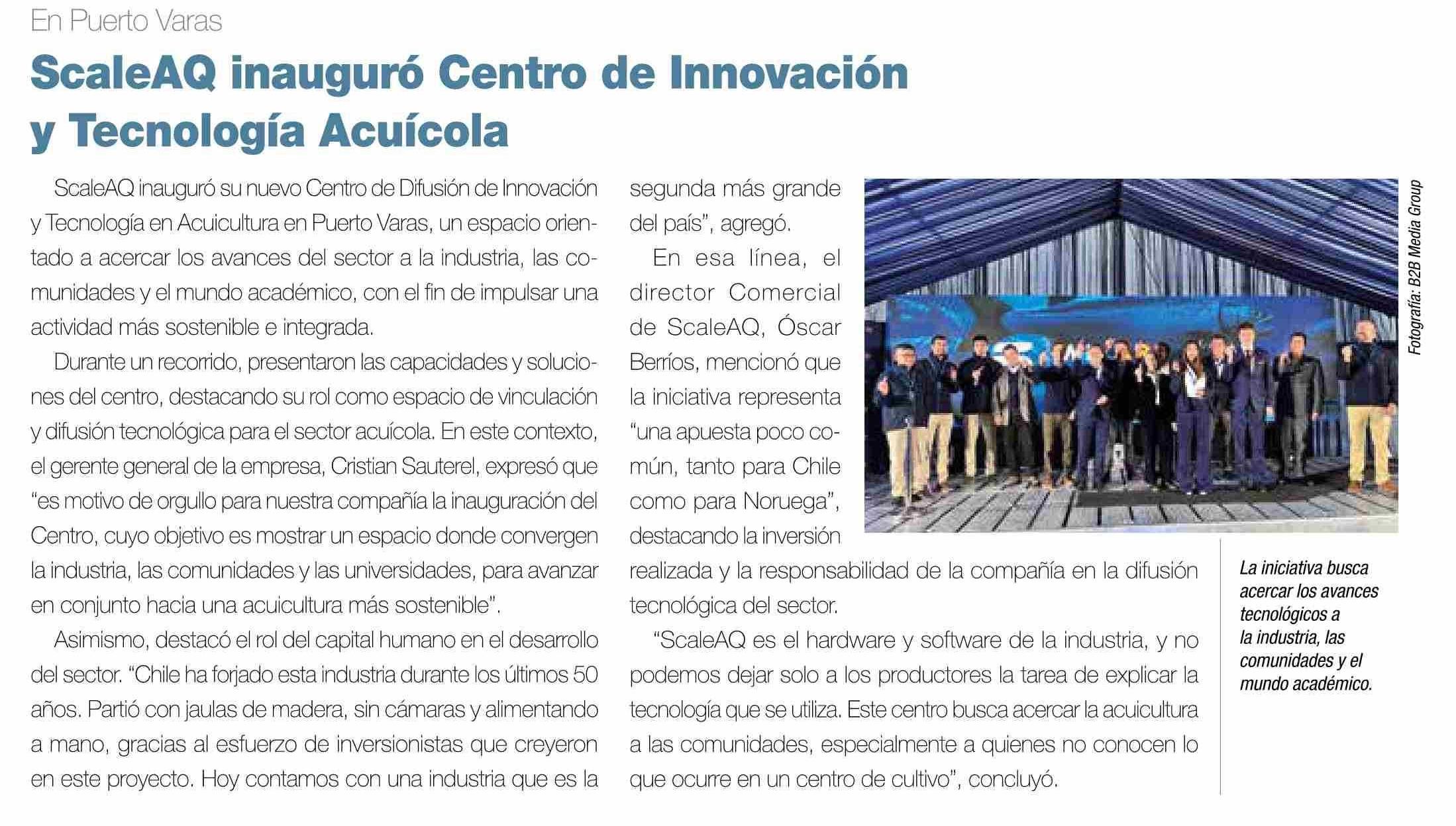 Título: ScaleAQ inauguró Centro de Innovación y Tecnología Acuícola